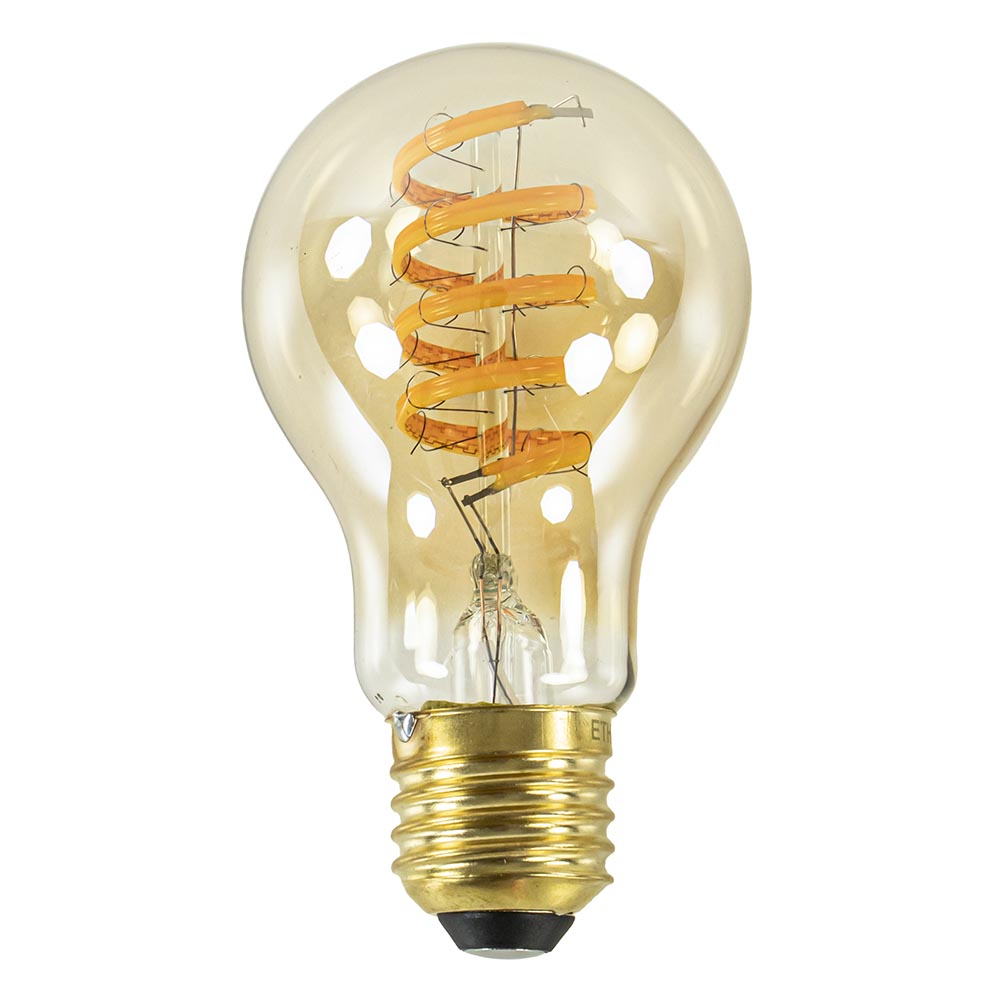 Deze decoratieve lichtbron is een perfecte toevoeging aan uw lamp. De A60 LED lichtbron is voorzien van een 3-standen dimfunctie. Dit werkt gemakkelijk met een gewone schakelaar. U heeft dus geen externe dimmer nodig. Zodra u de lamp aanzet begint deze in de felste stand. Per keer dat u de schakelaar aan en weer uit zet dimt de lamp een stap verder. Laat u een stand wat langer staan dan wordt deze onthouden dmv de memory functie. De LED lamp heeft een decoratieve spiraal en is uitgevoerd in het goud.