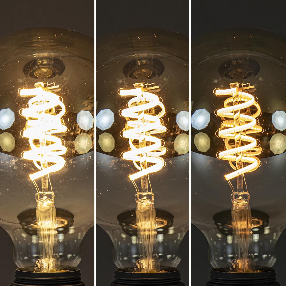 Deze decoratieve lichtbron is een perfecte toevoeging aan uw lamp. De globe LED lichtbron heeft een doorsnede van 125mm en is voorzien van een 3-standen dimfunctie. Dit werkt gemakkelijk met een gewone schakelaar. U heeft dus geen externe dimmer nodig. Zodra u de lamp aanzet begint deze in de felste stand. Per keer dat u de schakelaar aan en weer uit zet dimt de lamp een stap verder. Laat u een stand wat langer staan dan wordt deze onthouden dmv de memory functie. De LED lamp heeft een decoratieve spiraal en is uitgevoerd in het goud.