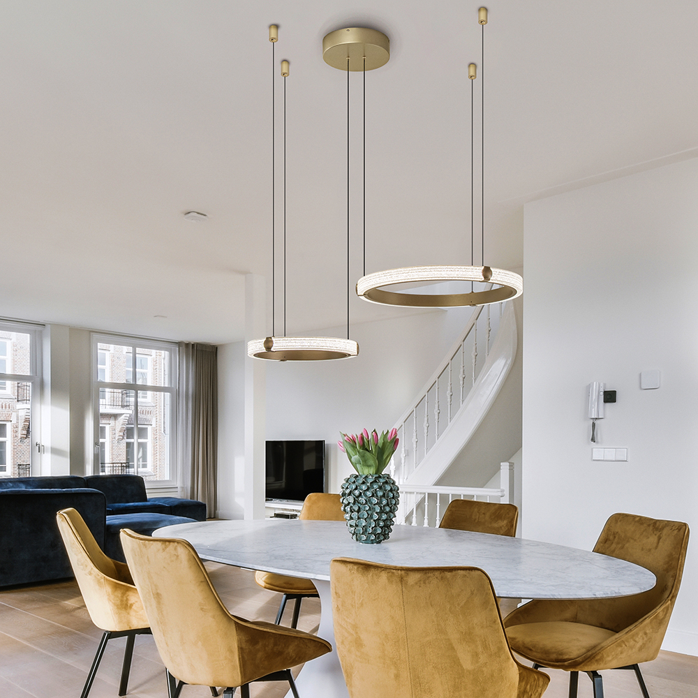Homepagina / Lampen / Eettafellampen / LED hanglamp ringen geborsteld goud met kristal effect