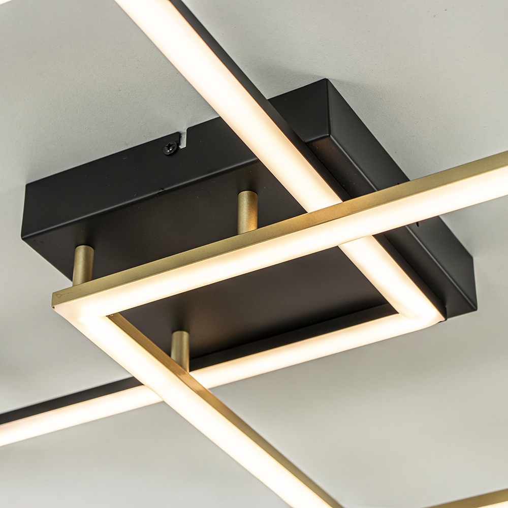 Homepagina / Lampen / Plafondlampen / LED Plafondlamp double square zwart+goud