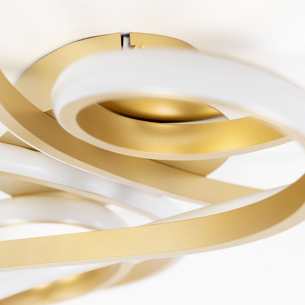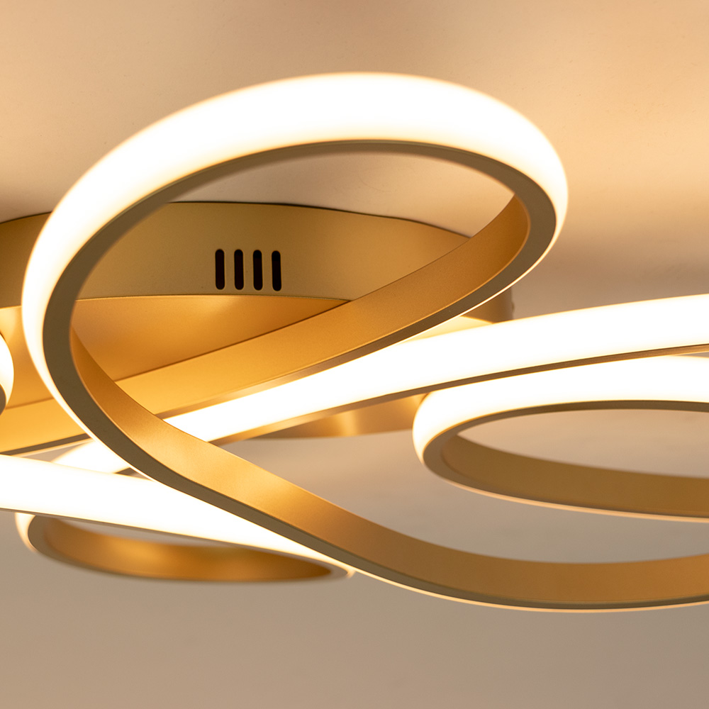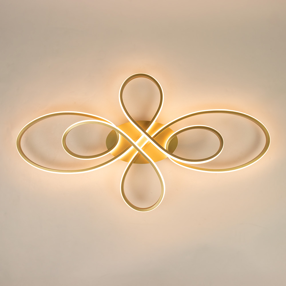 Maak een stijlvol statement in jouw interieur met de Infinity Large plafondlamp. Deze opvallende, elegante designlamp valt direct op door haar organische vormgeving met vloeiende lussen die op speelse wijze met elkaar zijn verweven. De geïntegreerde LED-verlichting is subtiel verwerkt in de goudkleurige armatuur, wat zorgt voor een gelijkmatige en sfeervolle lichtverspreiding. Met haar royale formaat is deze plafondlamp uitermate geschikt voor grotere ruimtes zoals de woonkamer, eetkamer of entreehal. De combinatie van het warme goud en het moderne LED-licht geeft de lamp een luxueuze uitstraling die zowel overdag als ’s avonds een echte blikvanger is.
