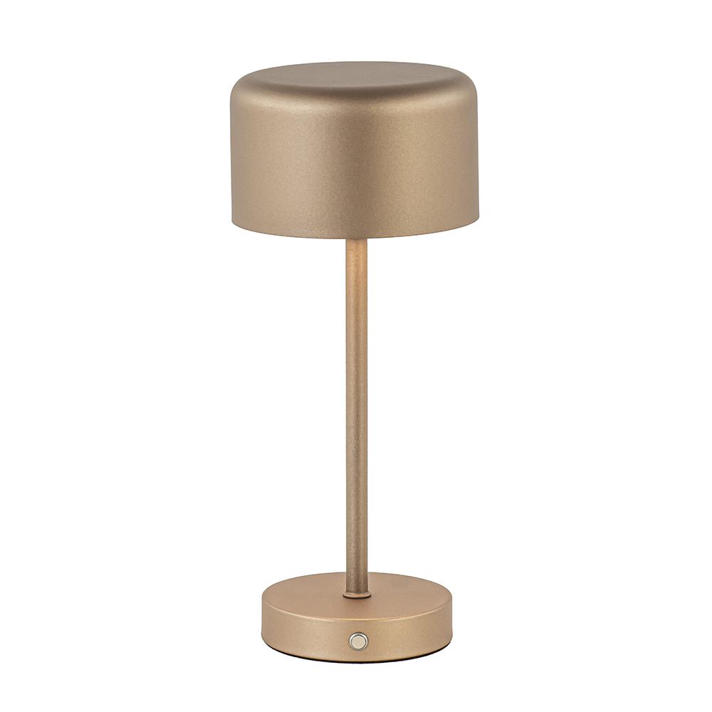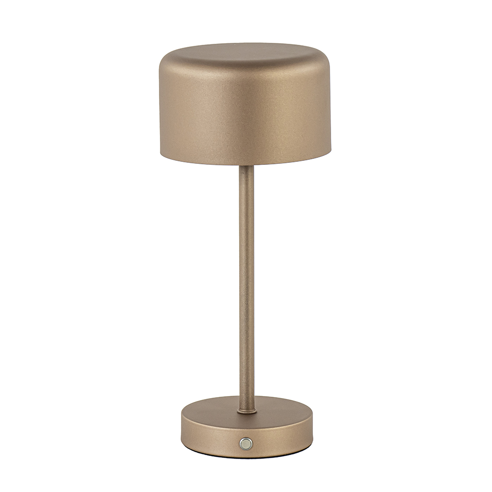 – afm: Ø12,6×30 cm – voet: Ø10×2,5 cm – kap: Ø12,6×7,5 cm – brons – inclusief LED – 120 lumen – 3000 Kelvin – 3-standen dimbaar – oplaadbaar – incl USB kabel