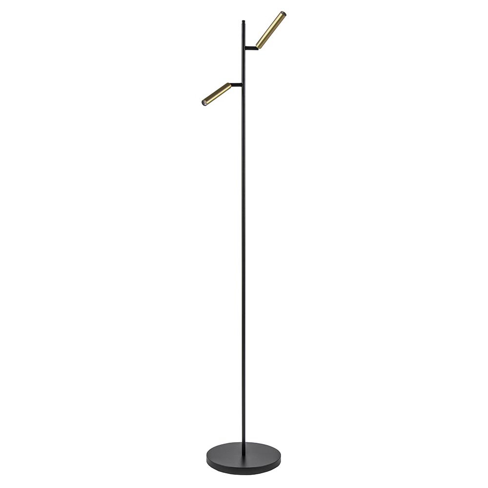 – hoogte: 154 cm – kappen: Ø2×15 cm – voet: Ø26×3,5 cm – metaal – zwart / goud – inclusief LED – 2x 4,4W – 2200-2700 Kelvin – 2x 450 lumen – dimbaar, dim to warm – zwart snoer: 180 cm – verstelbaar