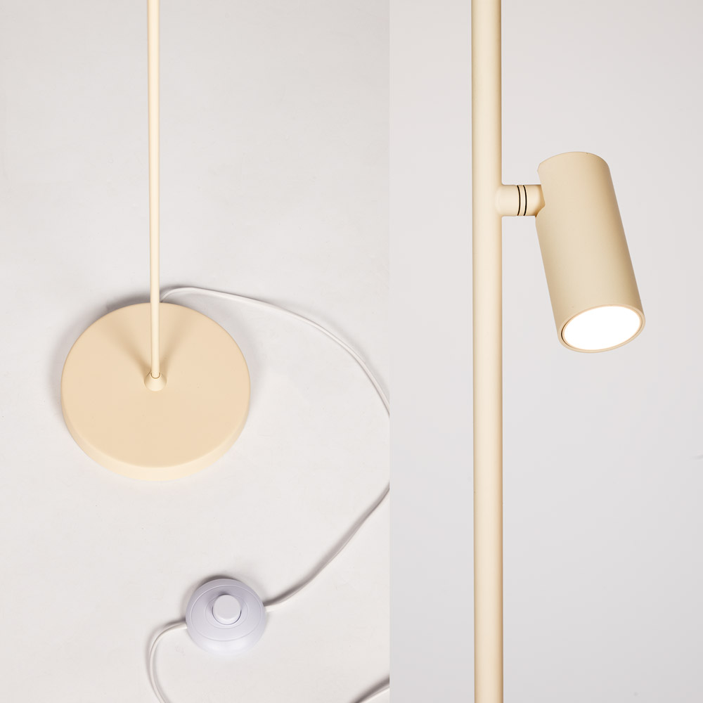 Highlights • Slanke vloerlamp met 1 richtbare spot • Geïntegreerde LED met warm licht (2700K) • Dimbaar via voetschakelaar met geïntegreerde dimfunctie • Verkrijgbaar in mat zwart of mat beige • Ideaal als leeslamp of subtiel accentlicht