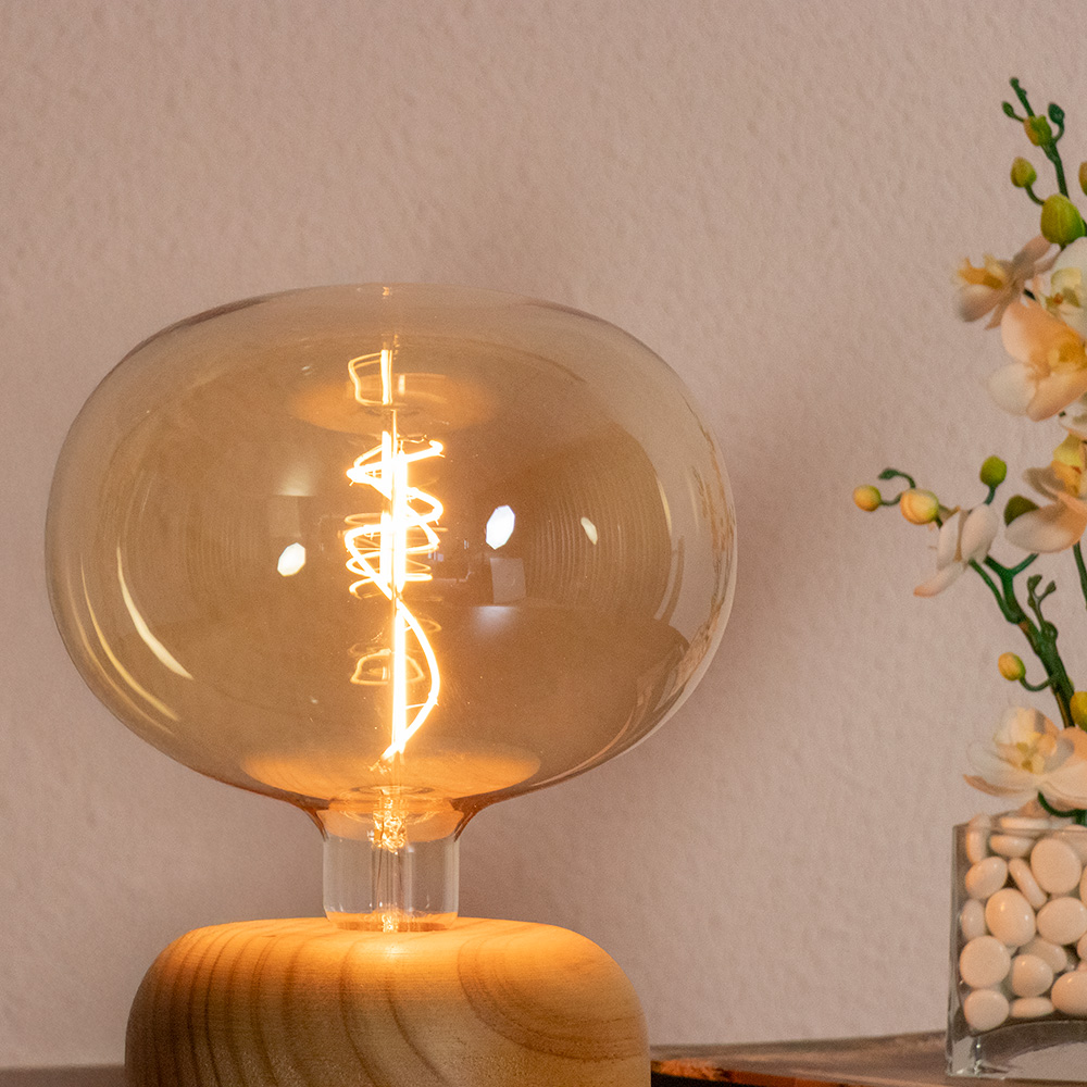 Homepagina / Lichtbronnen / E27 Led Lampen / Lichtbron LED Ovaal E27 – 2100K | 520lm | dimbaar – Amber | Ø22cm