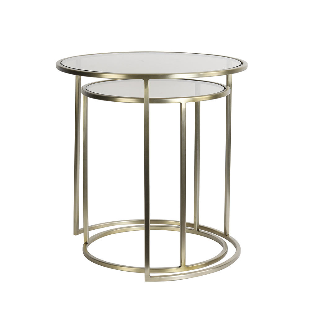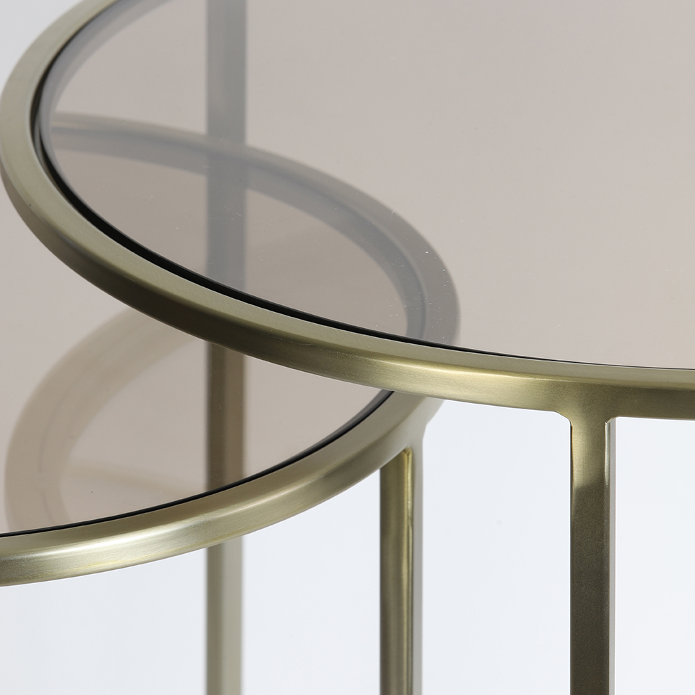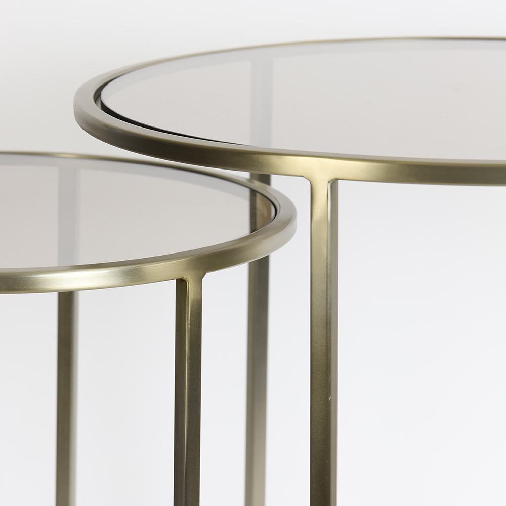 Homepagina / Wonen / Bijzettafels / Light and Living bijzettafel Duarte set van 2 goud met bruin glas