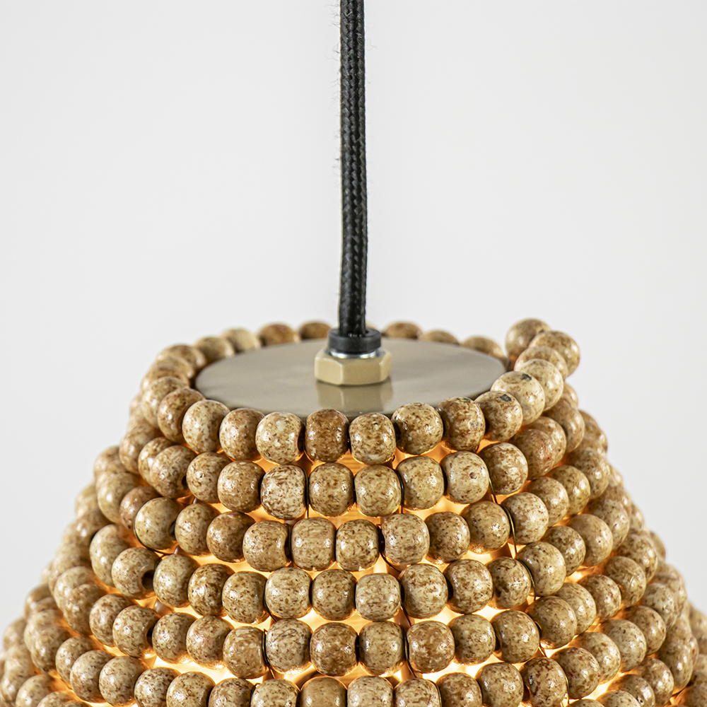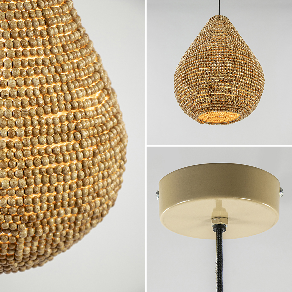 – afm: Ø31×150 cm – kap: Ø31×39 cm – bevestiging: Ø10×3 cm – kralen – bruin – exclusief lichtbron (E27) – dimbaar (exclusief)