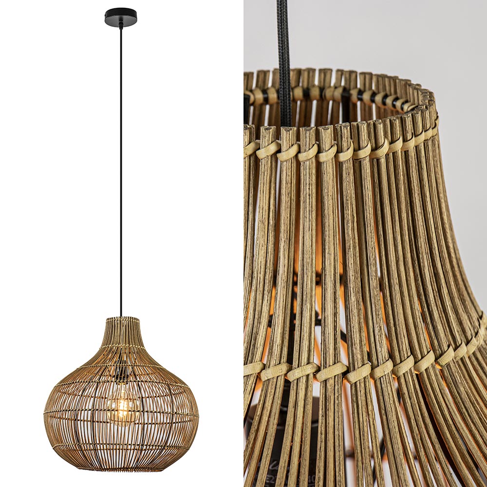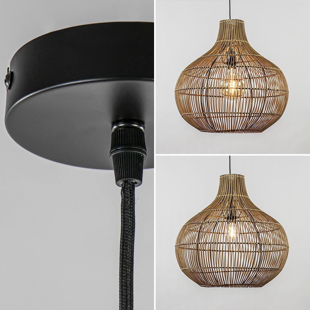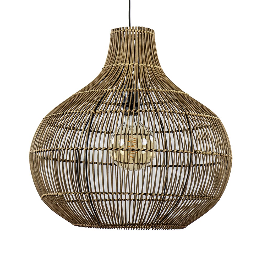 – hoogte: 158 cm – kap: Ø50×50,5 cm – bevestiging: Ø10×2,5 cm – rotan, donker bruin – metaal, zwart – exclusief lichtbron (E27) – dimbaar (exclusief)