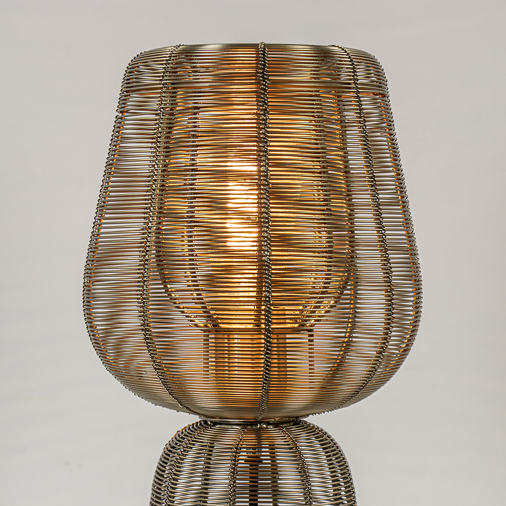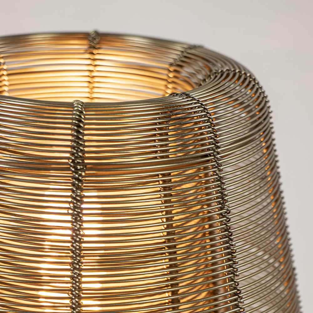 Tafellamp Aboso van Light and Living zorgt voor stijl en functie. De metalen draadlamp is uitgevoerd in het goud wat de lamp een trendy look geeft. In het bovenste gedeelte is de lamp voorzien van een E27 fitting. Door de open structuur laat de tafellamp prima licht door zodat er een sfeervolle en fijne lichtverspreiding ontstaat. Aboso van Light van Living is voorzien van een zwart snoer met een lengte van 170 cm en wordt geleverd exclusief lichtbron.