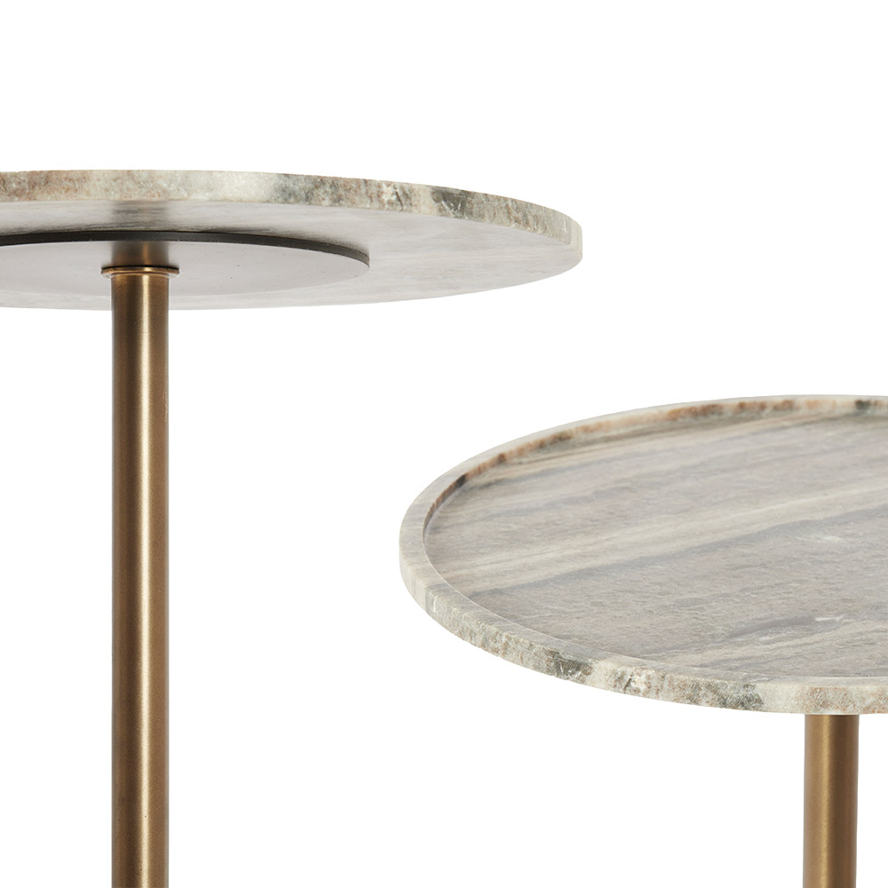 Bijzettafels Civita – marmerlook zandgrijs / donkerbruin / brons – Ø37×49 cm Chic, natuurlijk en helemaal van nu.