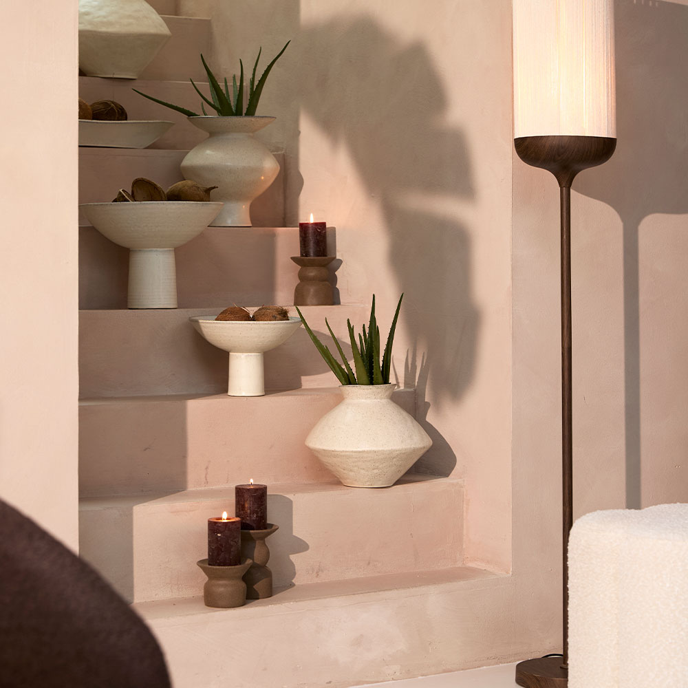 De Atrani kandelaren brengen een natuurlijke, serene sfeer in huis — tijdloos en stijlvol in elke combinatie.