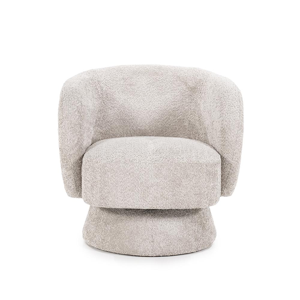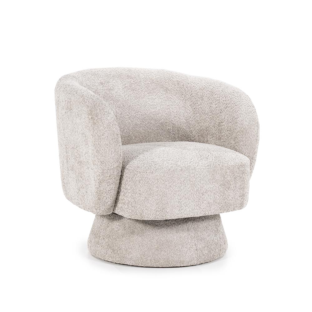 Wat een leuk fauteuiltje, deze hoog knuffelbare Balou. Helmaal volgens de laatste trends in een wollige taupekleurige stof en gestoffeerde voet. Hij weegt 24 kg dus is makkelijk in huis te verzetten. Er bestaat ook een voetenbankje waardoor je dit stoeltje zo omtovert in een lounge stoel.