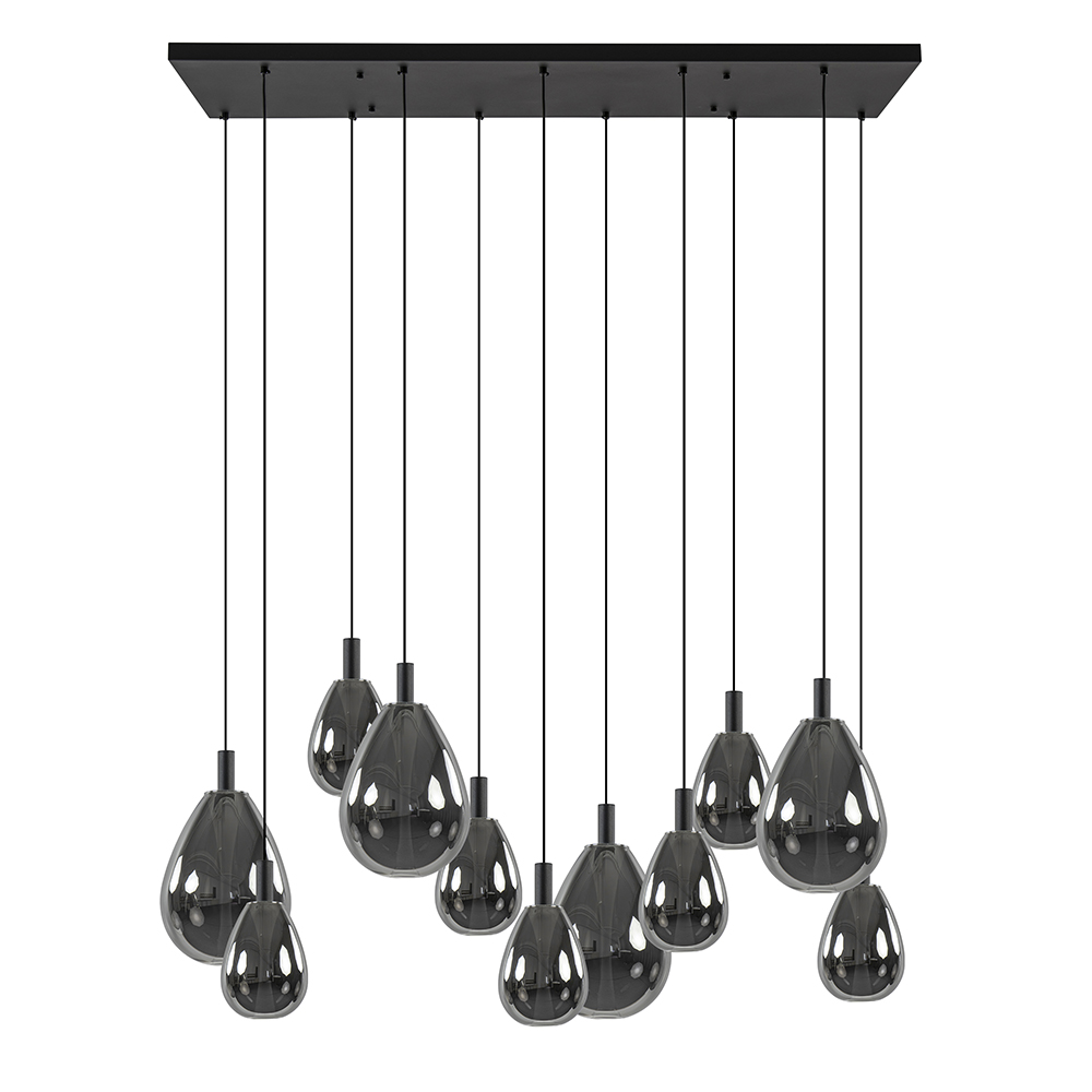 Homepagina / Lampen / Eettafellampen / Luxe 11-lichts LED hanglamp zwart met smoke glas