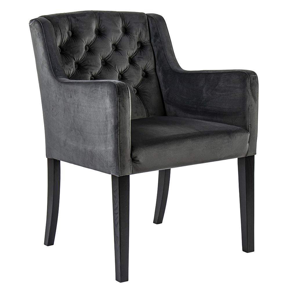 Homepagina / Wonen / Eetkamerstoelen / Luxe armstoel velvet mid grey met zwarte eiken poot