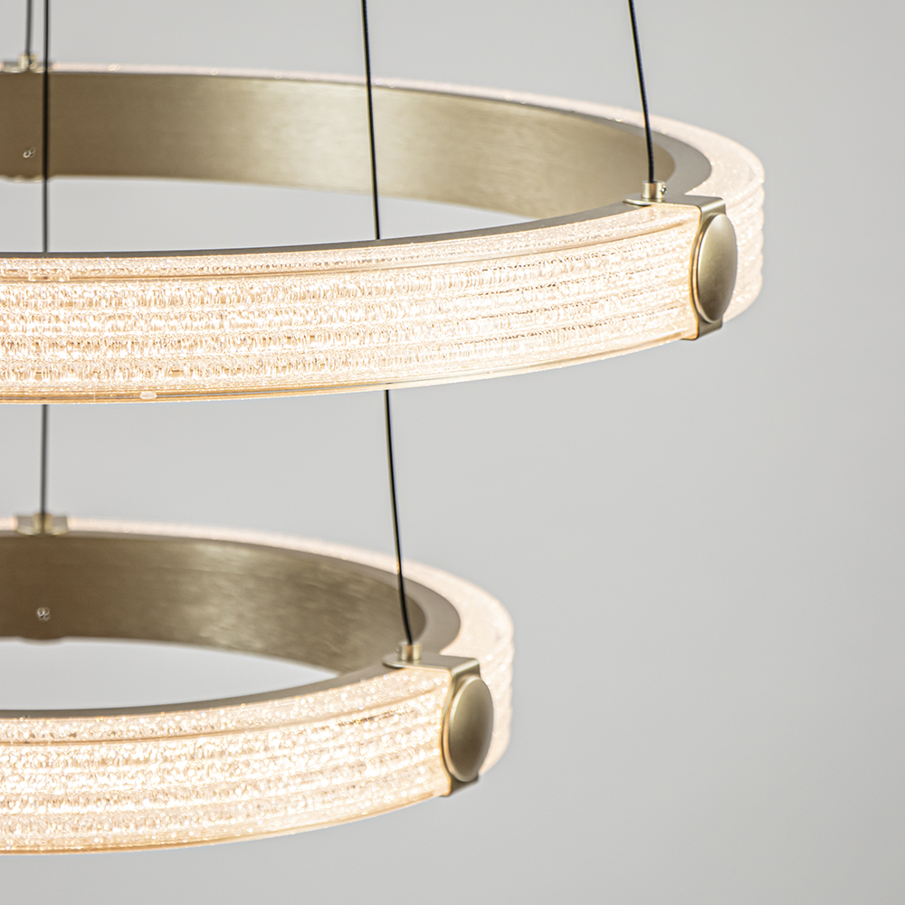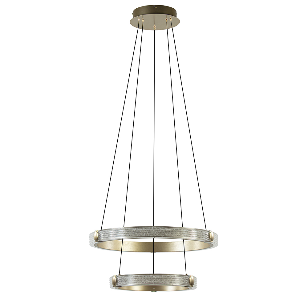 – afm: Ø60×150 cm – bevestiging: Ø25×5,5 cm – ring 1: Ø60×5 cm – ring 2: Ø40×5 cm – metaal, goud – kristaleffect – inclusief LED – 2700 Kelvin – 3500 lumen – dimbaar (exclusief)