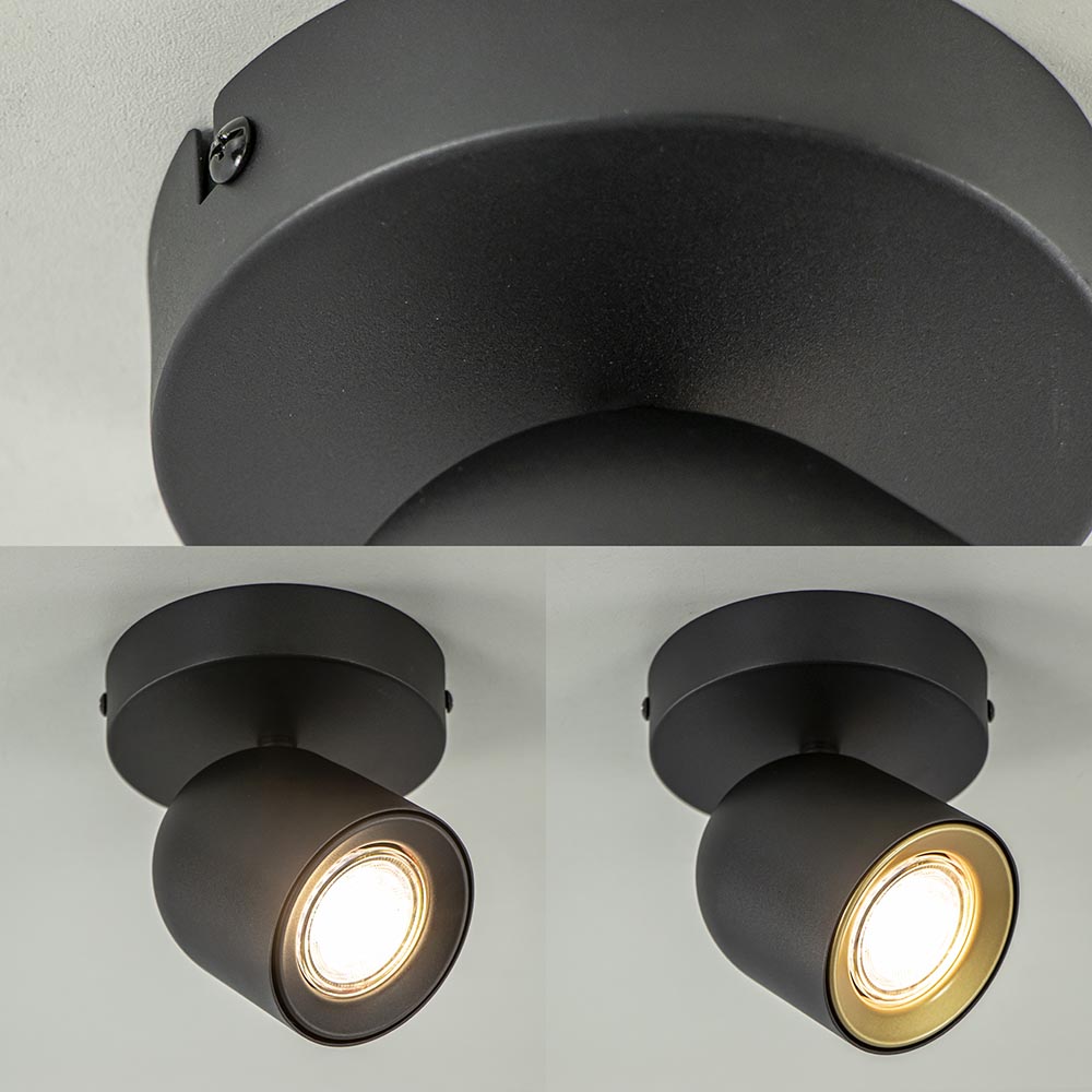 – afm: Ø11×13 cm – bevestiging: Ø11×2,5 cm – spot: Ø8×9 cm – metaal – zwart/goud – verstelbaar – exclusief lichtbron (GU10) – dimbaar (exclusief)