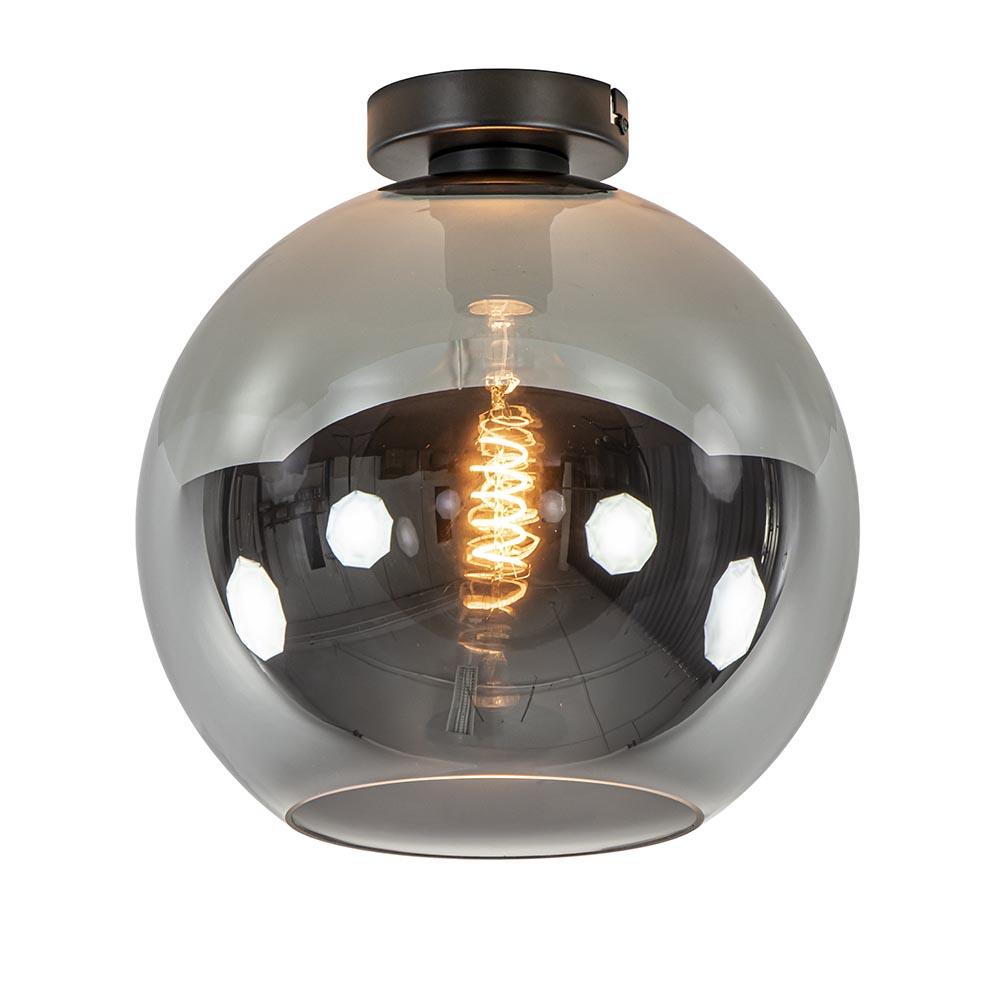 Homepagina / Lampen / Plafondlampen / Mat zwarte plafondlamp met smoke glazen bol 30 cm