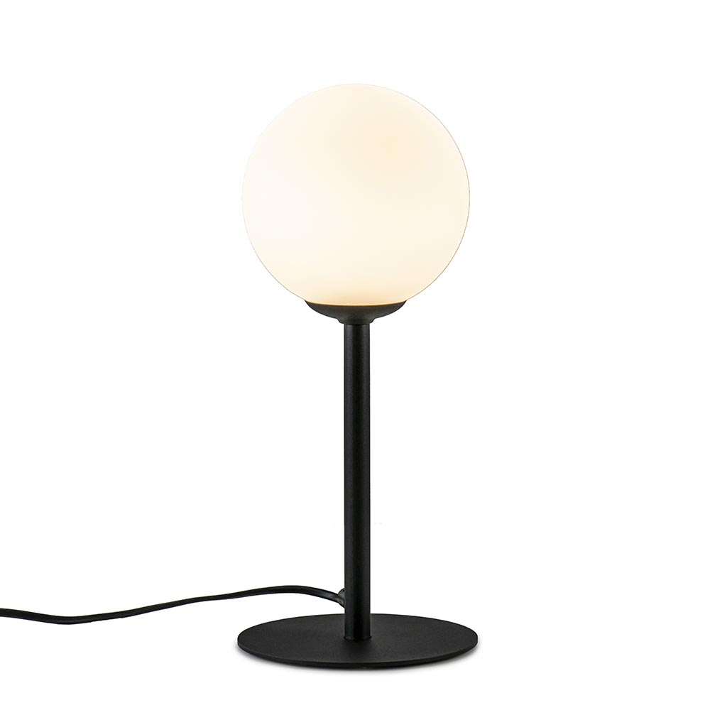 Homepagina / Lampen / Tafellampen / Mat zwarte tafellamp met witte glazen bol