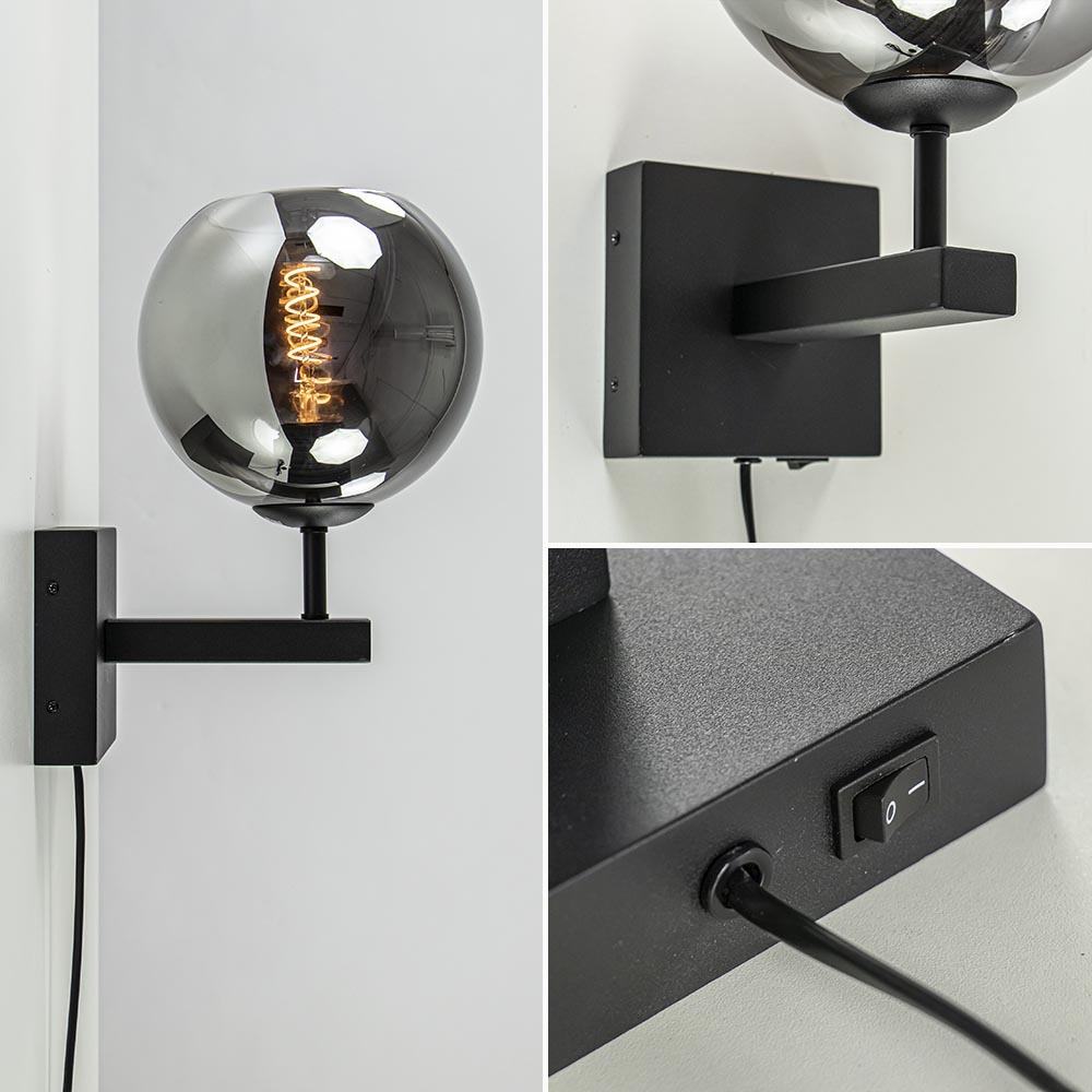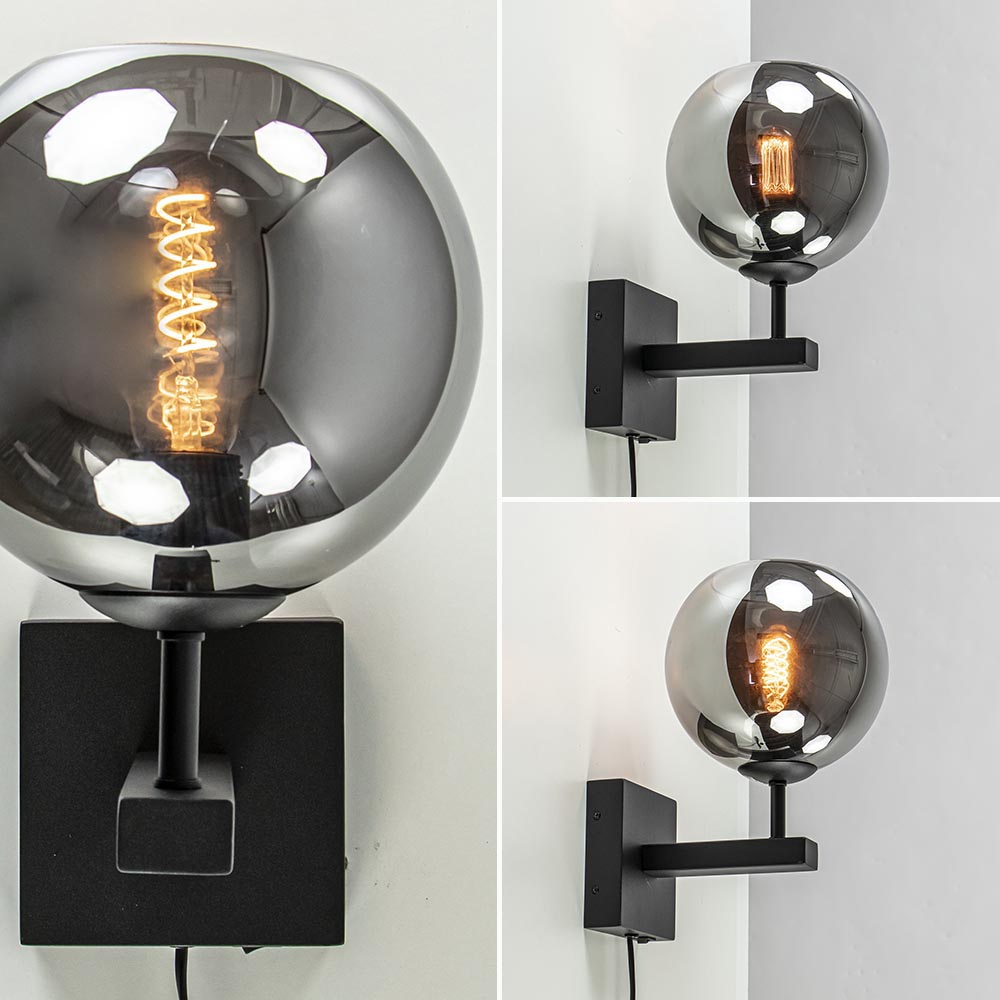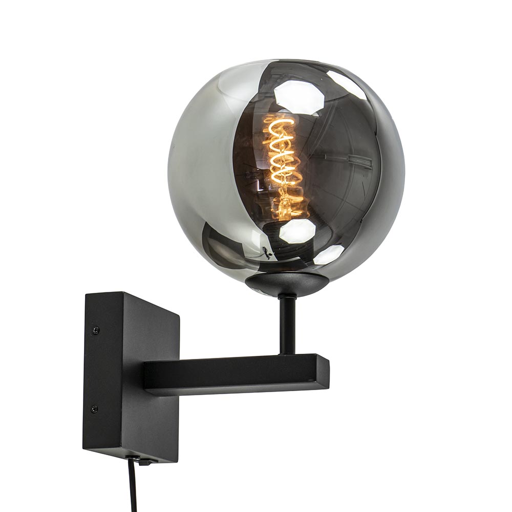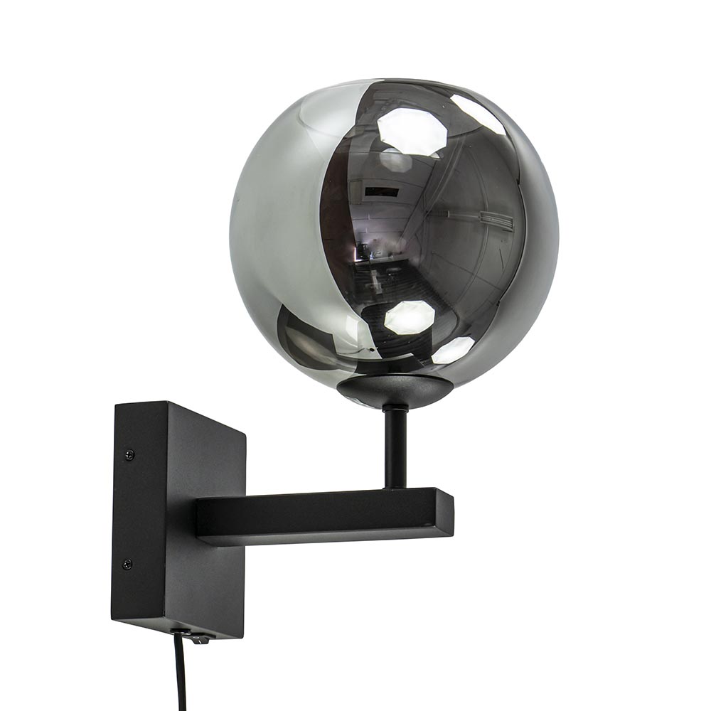 Homepagina / Lampen / Wandlampen / Mat zwarte wandlamp met smoke glazen bol 20 cm