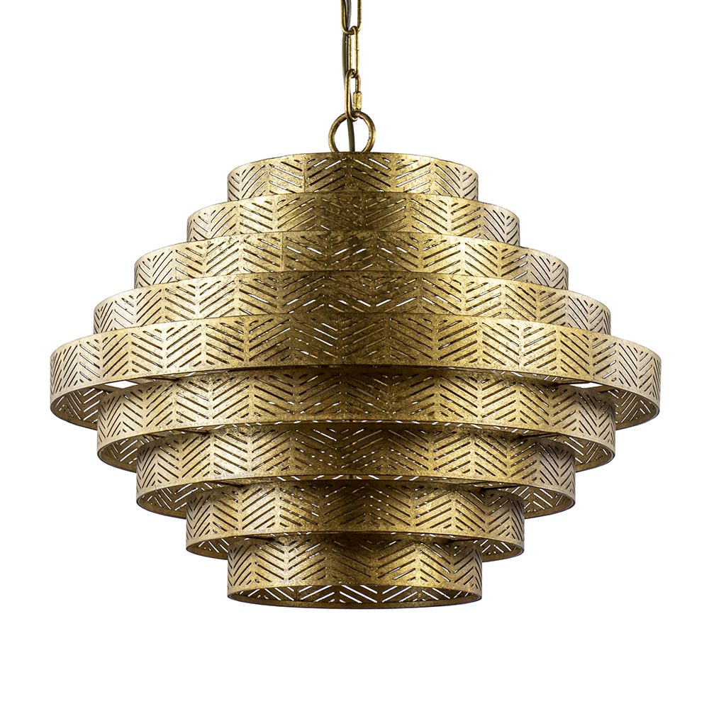 Deze prachtige hanglamp maakt het interieur helemaal af. De lamp is volledig gemaakt van metaal en uitgevoerd in ambachtelijk brons. Dit geeft de lamp een robuuste look die wordt versterkt door de bewerking in het metaal. De kap is opgebouwd uit losse ringen die met elkaar zijn verbonden en de kap hangt aan een stevige ketting die in dezelfde kleur als de kap is uitgevoerd. Binnenin de kap is de lamp voorzien van 4 lichtpunten met een E14 fitting. Hierdoor verspreid de lamp een goede lichtopbrengst. Daarnaast is de kap aan de onderzijde nog voorzien van een extra GU10 spot die het oppervalkte onder de lamp goed uitlicht. Deze spot is dmv de schakelaar op het armatuur apart te bedienen van de andere verlichting. De robuuste bronzen hanglamp staat stijlvol boven een ronde eettafel, in de hal of in een slaapkamer. De ronde hanglamp is dimbaar middels een externe dimmer (exclusief)