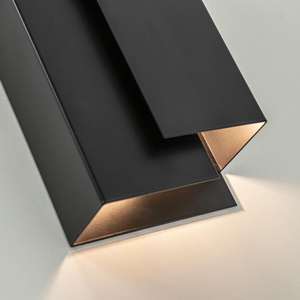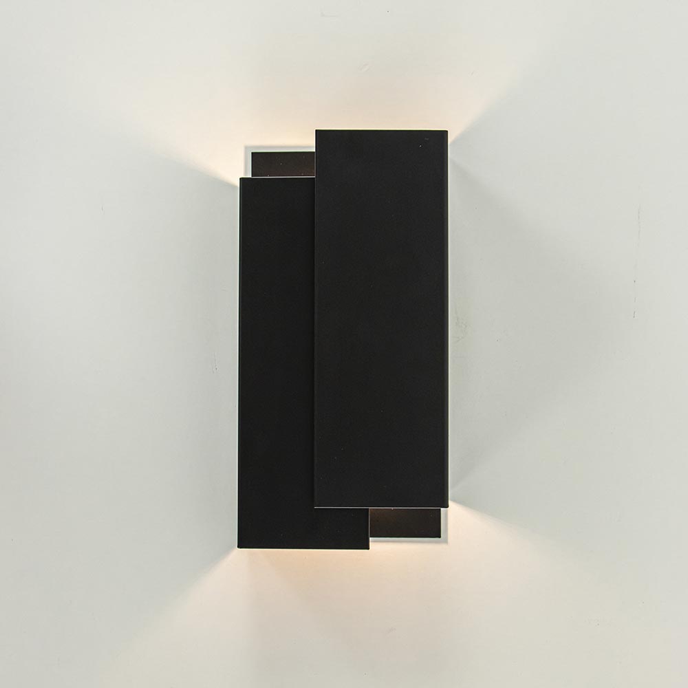 Sfeervol en strak van design. De rechthoekige wandlamp is gemaakt van metaal en voorzien van een overlapping. Dit geeft een speels effect en zorgt voor een open structuur. De wandlamp is uitgevoerd in het mat zwart en is van binnen voorzien van 2 G9 lichtpunten. De wandlamp werkt dus als een up en downlighter. De zwarte wandlamp wordt gemakkelijk gemonteerd door de kap op de wandbevestiging te schuiven. De design wandlamp is niet voorzien van een snoer.