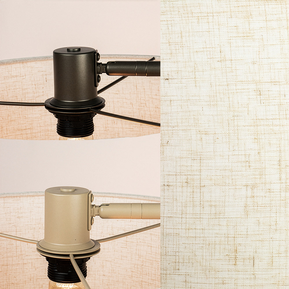 De Jacqueline-serie van ETH combineert elegantie met functionaliteit. Zowel de tafellamp als de vloerlamp hebben een zachte, natuurlijke uitstraling dankzij de harmonieuze combinatie van een metalen armatuur in zand of anodic bruin met een crèmekleurige stoffen kap. Het draaibare en kantelbare hoofd maakt het eenvoudig om het licht precies te richten waar je het nodig hebt — ideaal voor lezen, werken of subtiele sfeerverlichting.
