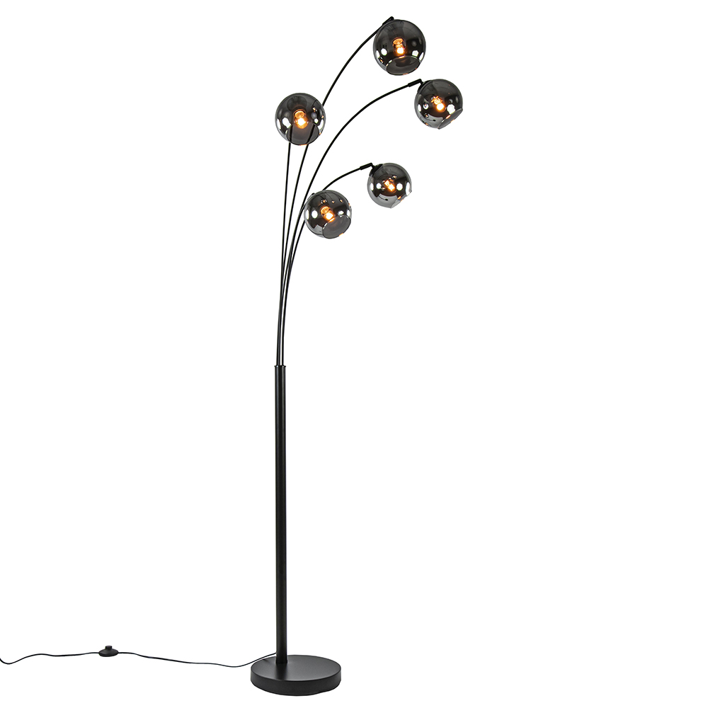 Homepagina / Lampen / Booglampen / Moderne 5-lichts booglamp met smoke glazen bollen