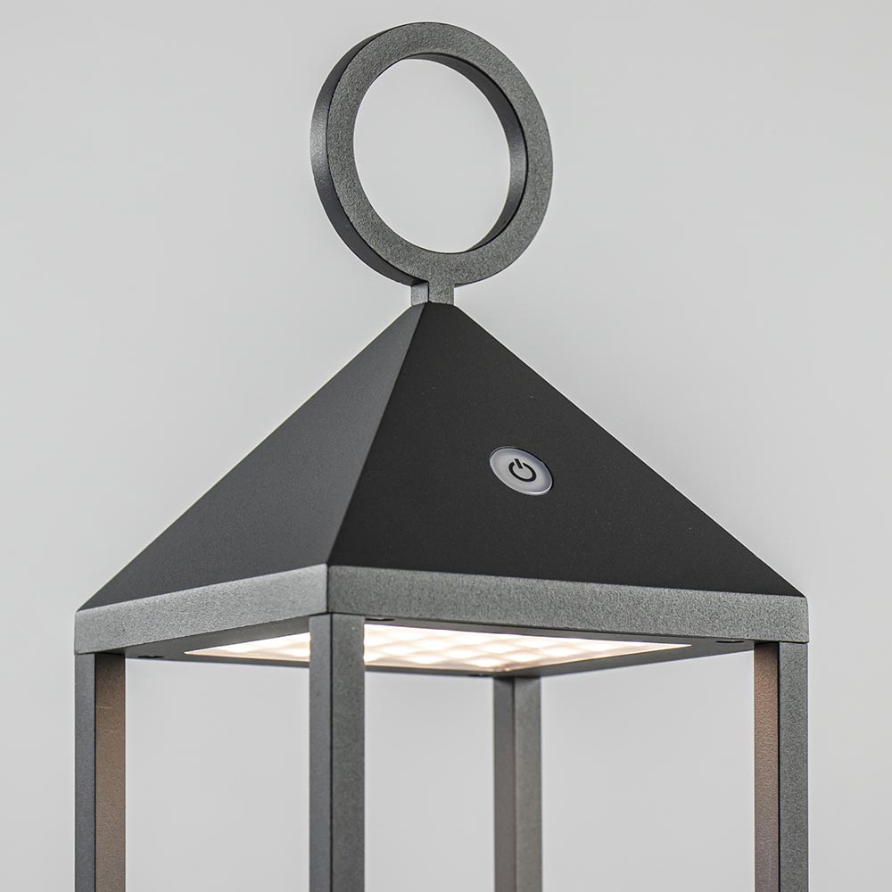 Een perfecte toevoeging om het balkon of de tuin nog gezelliger te maken. Deze moderne lantaarn is IP54 goedgekeurd en dus perfect geschikt voor buiten. De buitenlamp is gemaakt van aluminium en uitgevoerd in het antraciet. In de top van de lantaarn is LED verlichting verwerkt. Deze is gemakkelijk te bedienen dmv de touchdimmer. Één keer drukken is aan of uit, houdt u de dimmer ingedrukt dan dimt deze naar de gewenste stand. Het leuke aan de lantaarn is dat deze draadloos is en daardoor overal neergezet kan worden. Met de meegeleverde kabel laad u de LED buitenlamp binnen 5 tot 8 uur weer helemaal op. Bij volledige oplading kan de buitenlamp wel 12 uur lang branden.
