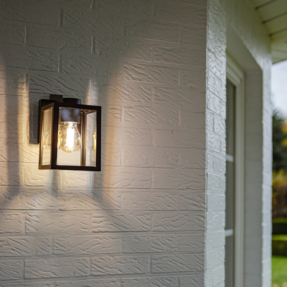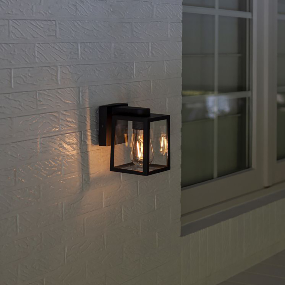Deze moderne lantaarn brengt wat extra sfeer aan de tuin. De buitenlamp is klein van stuk maar groots in effect. De buiten wandlamp heeft een aluminium armatuur dat is uitgevoerd in het mat zwart met helder glas. De lantaarn heeft een E27 fitting zodat u zelf kunt kiezen wat voor lichtbron u wilt plaatsen.