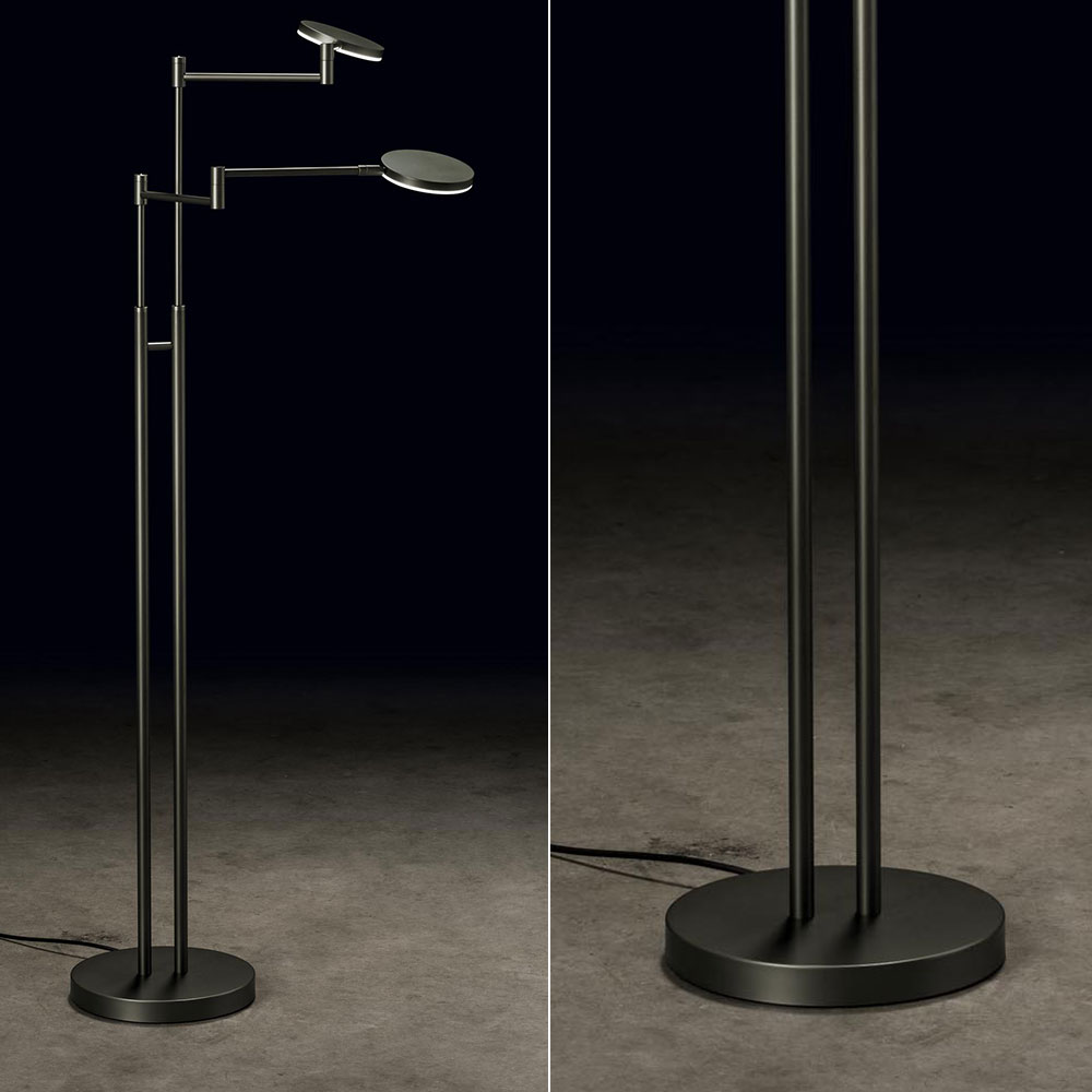 Deze dubbele vloerlamp/leeslamp heeft 2 poten die beide in hoogte verstelbaar zijn. Ook zijn de zwenkarmen flexibel. Dat maakt deze leeslamp de ideale aanwinst in uw woonkamer. De leeslamp is voorzien van geïntegreerd LED. De LED unit kan worden vervangen door onze leverancier, dus de lamp kan een leven lang mee. Deze leeslamp, in antraciet, is voorzien van 2 touchdimmers. Hiermee stelt u, traploos, de gewenste lichtsterkte in. De strakke vormgeving staat prachtig in een Scandinavisch, modern of design interieur.
