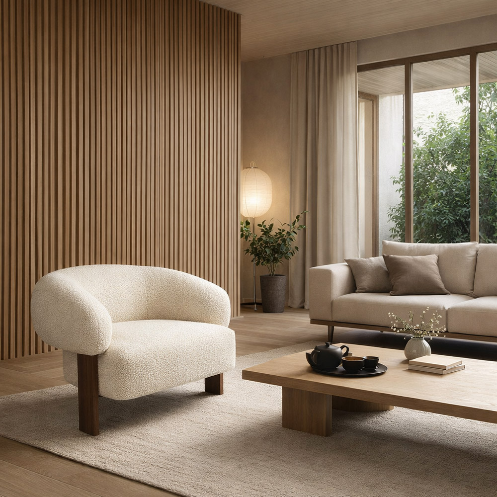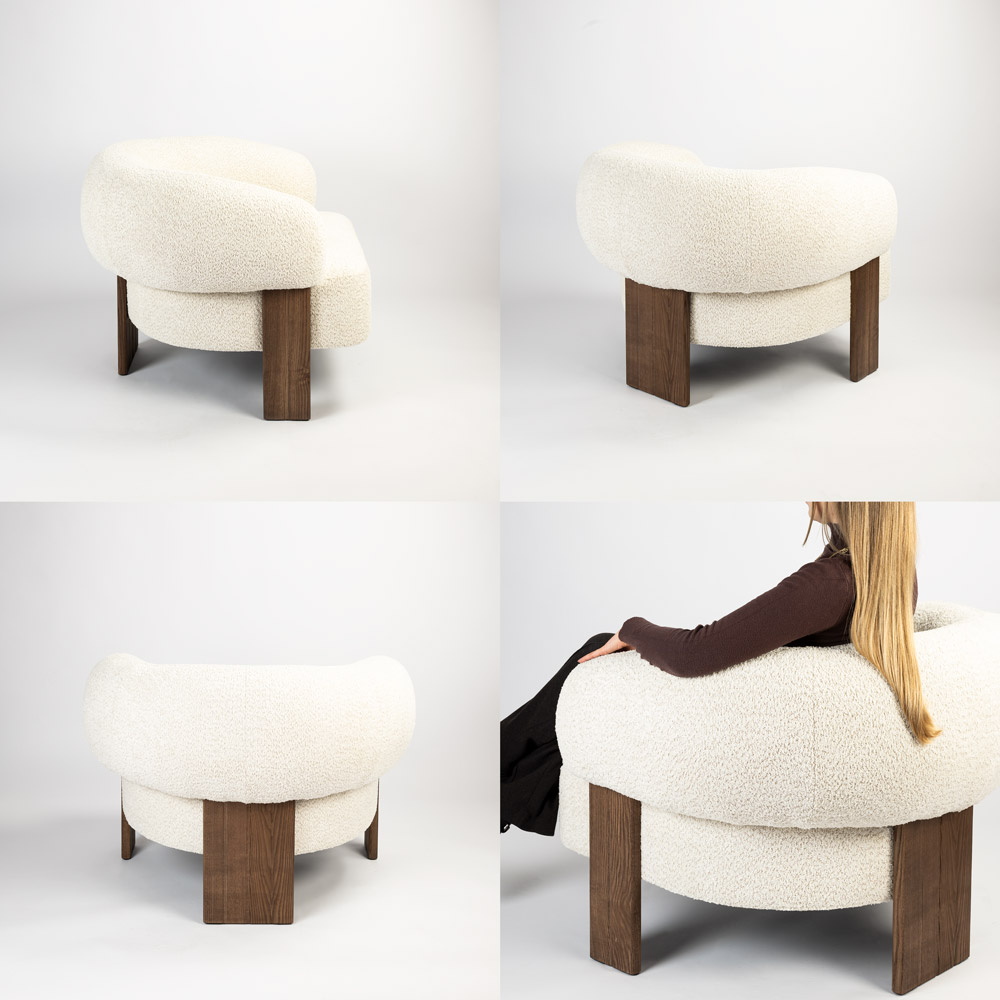 Highlights • Organisch vormgegeven fauteuil met omarmend zitcomfort • Zachte teddy bekleding met warme, luxe uitstraling • Sculpturale rug- en armleuningen als subtiele eyecatcher • Donker houten poten voor een krachtig en stijlvol contrast • Perfect als accentfauteuil in woonkamer, leeshoek of slaapkamer