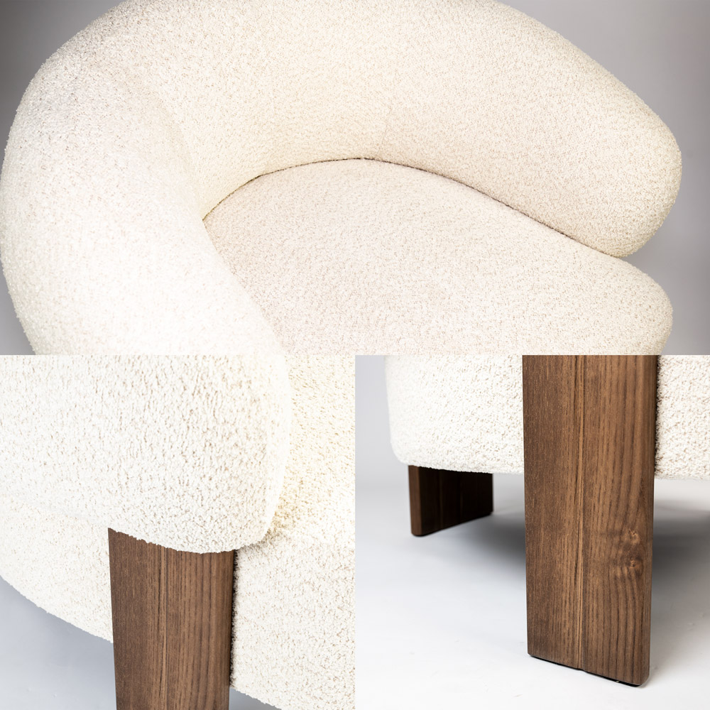 Waarom kiezen voor de Pimo fauteuil? • Sculpturaal design met zachte, organische lijnen • Comfortabele zit met omarmend gevoel • Trendy teddy bekleding met warme uitstraling • Stevig en stijlvol door houten poten • Tijdloze fauteuil met karakter