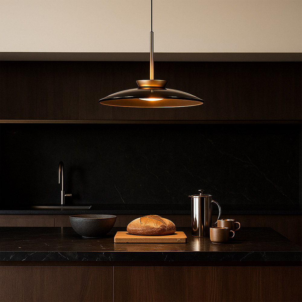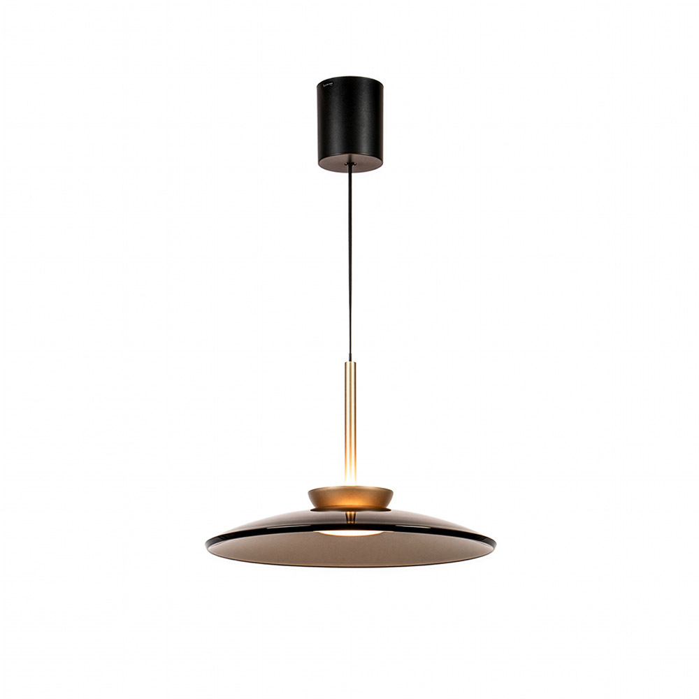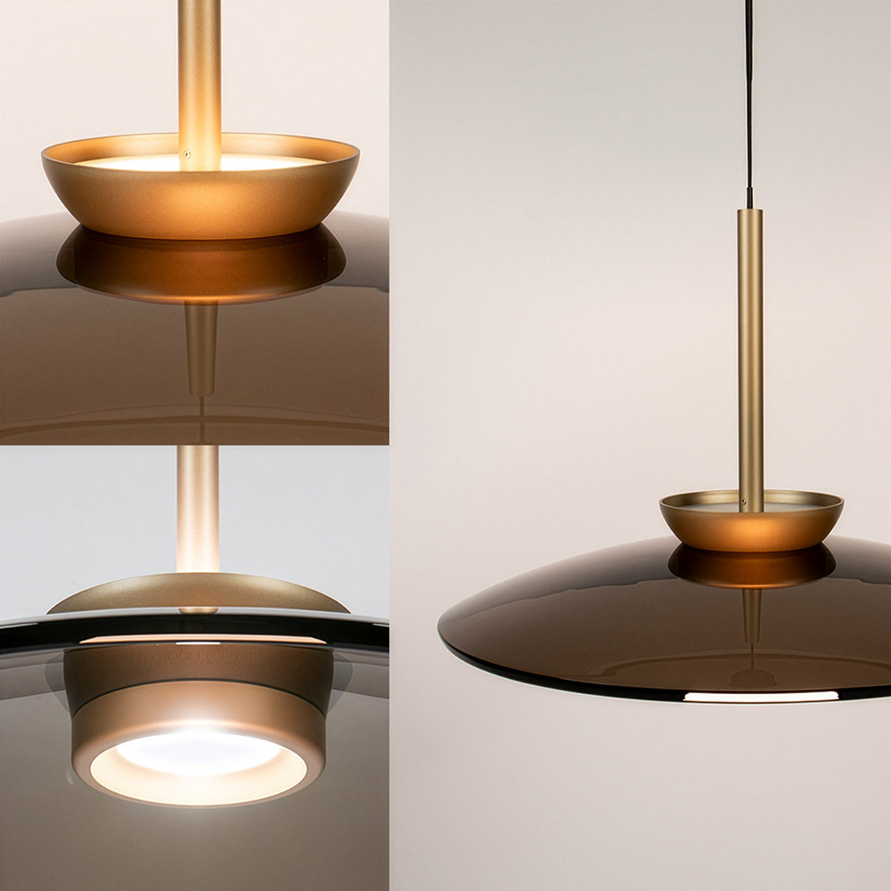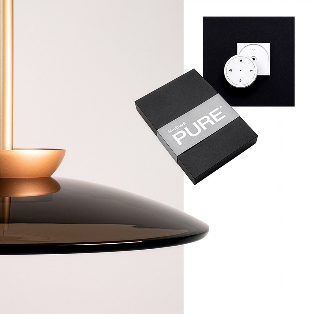 De Pure-E Moon van Paul Neuhaus is een moderne design hanglamp met een geavanceerd E-Lift systeem, waarmee je de hoogte elektrisch kunt verstellen tot een maximale lengte van 240 cm. De ronde schotelvormige kap (Ø 50 cm) is vervaardigd uit glas en metaal en afgewerkt in een stijlvolle bronstint. Perfect boven een eettafel of kookeiland waar comfort, sfeer en technologie samenkomen.