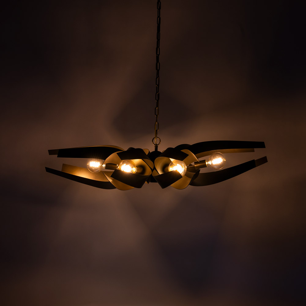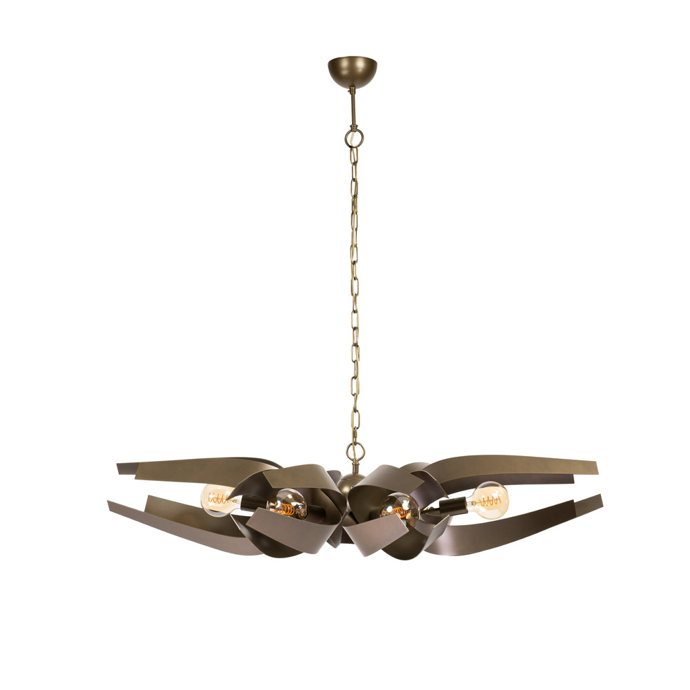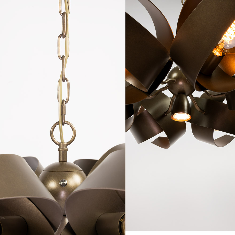 De Ott hanglamp is een echte statement lamp met een dynamisch lijnenspel van gebogen metalen elementen. De volledig bronzen afwerking geeft de lamp een warme, luxe uitstraling die perfect past binnen moderne, industriële en hotel-chic interieurs.