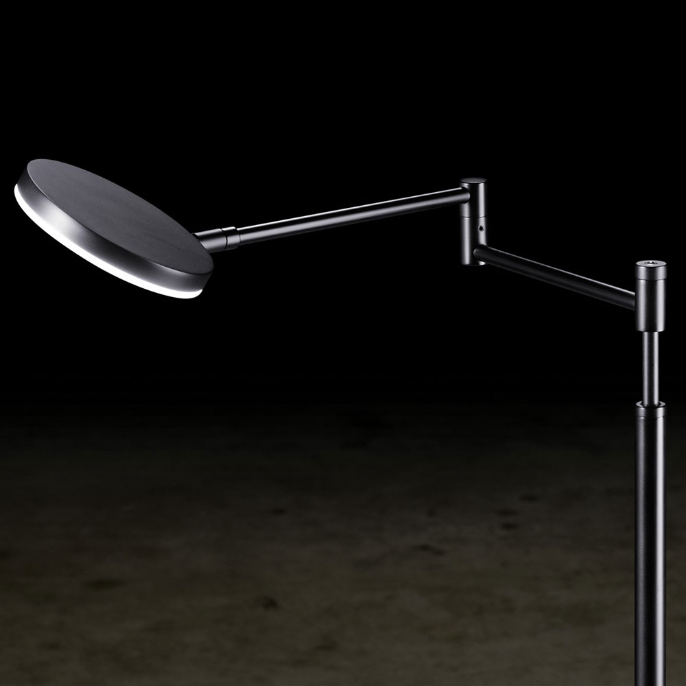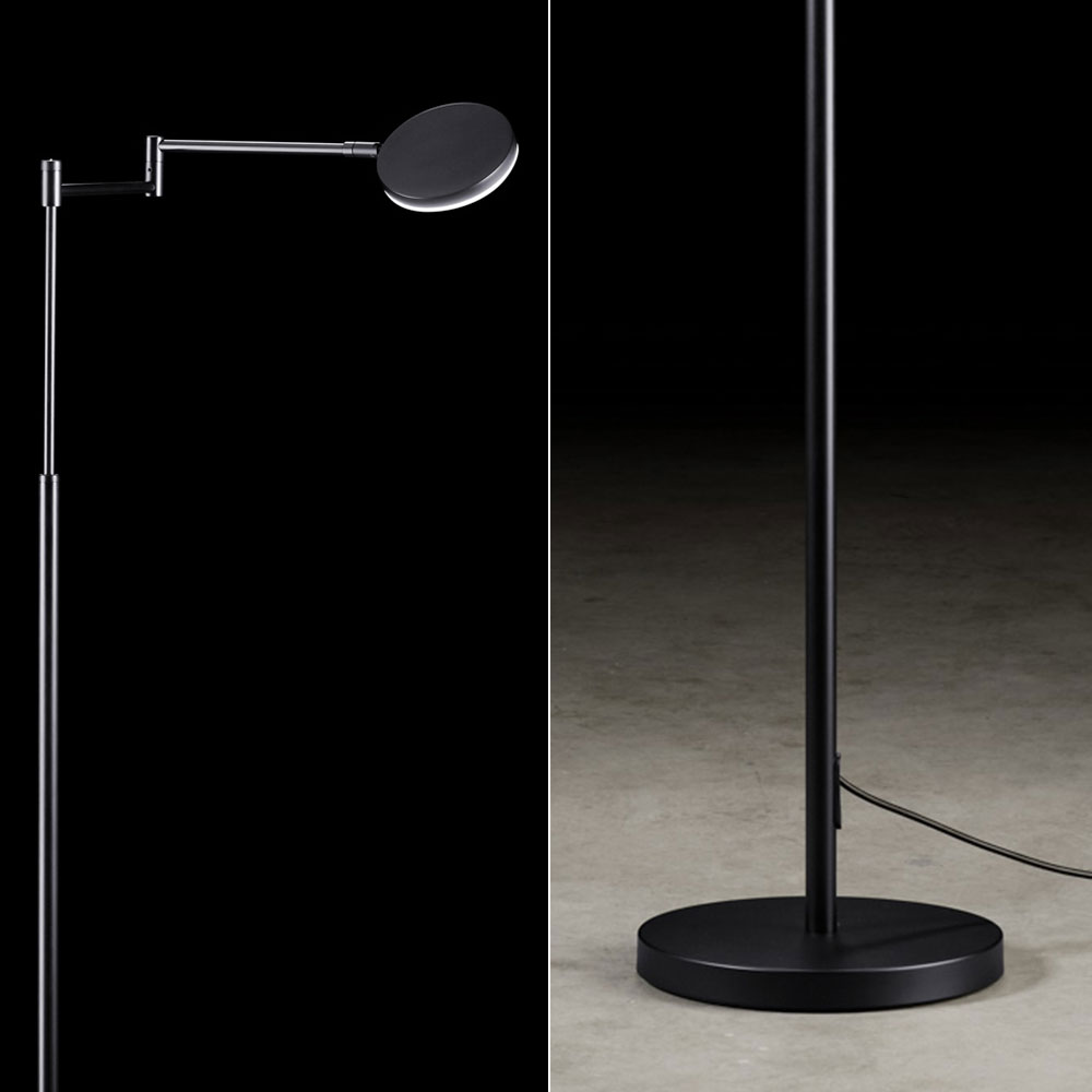 Deze energiezuinige LED vloerlamp is makkelijk te verstellen. Zowel in hoogte als met de draai-armen en de kop. Dit maakt dat deze lamp de perfecte leeslamp is naast uw favoriete fauteuil. Deze leeslamp, uitgevoerd in zwart, is voorzien van een touchdimmer. Hiermee stelt u, traploos, de gewenste lichtsterkte in. De strakke vormgeving staat prachtig in een Scandinavisch, modern of design interieur.