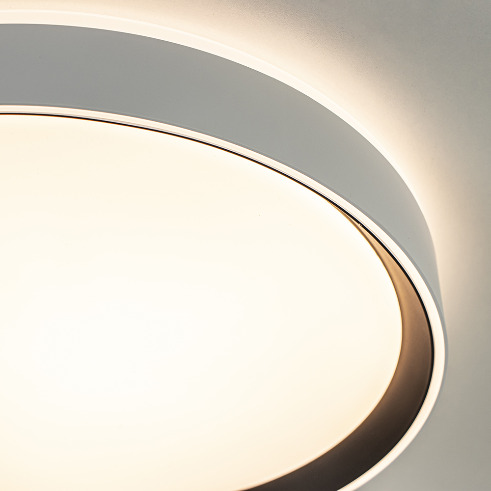 Een moderne plafondlamp met een fijne techniek. De ronde plafonièrre is voorzien van geïntegreerd LED met 3-standen dimfunctie. Dit werkt gemakkelijk met de gewone wandschakelaar. U heeft dus geen externe dimmer nodig. Per keer dat u de lamp aan zet dimt deze een stap verder. Ideaal om snel de gewenste intensiteit te creëren. De plafondlamp verspreid direct licht naar beneden en ook indirect licht over het plafond. Zo ontstaat er een mooi lichtspel in de ruimte.