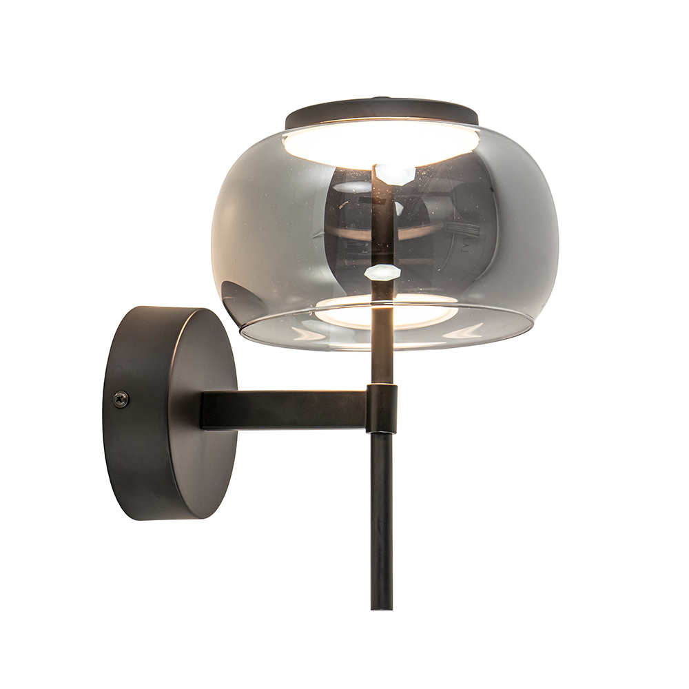 Homepagina / Lampen / Wandlampen / Moderne LED wandlamp zwart met smoke glas