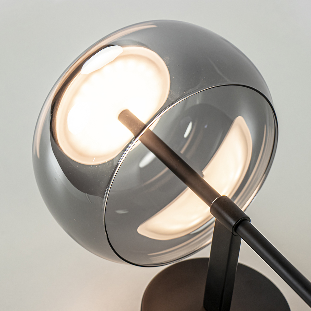 – afm: 18x22x26 cm – bevestiging: Ø11×3,5 cm – metaal, mat zwart – smoke glas – inclusief LED – 2700 Kelvin – 420 lumen – dimbaar (exclusief)