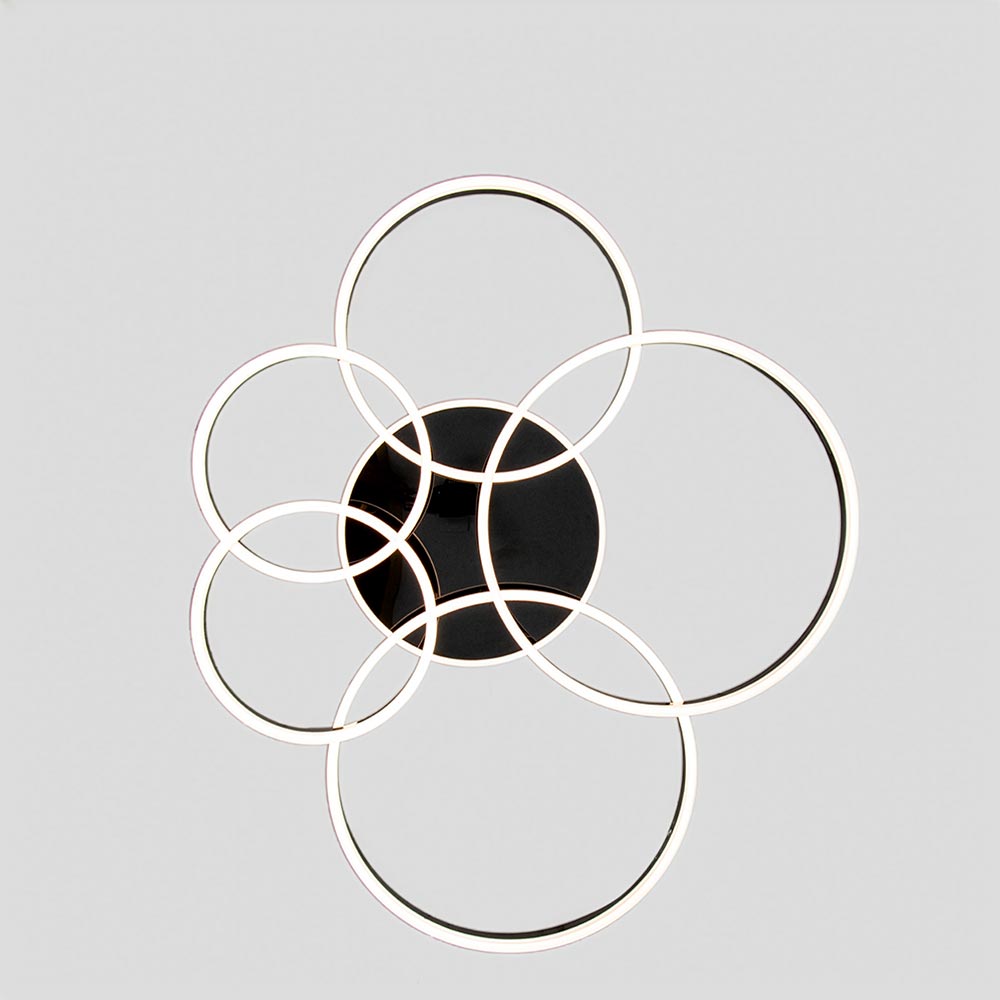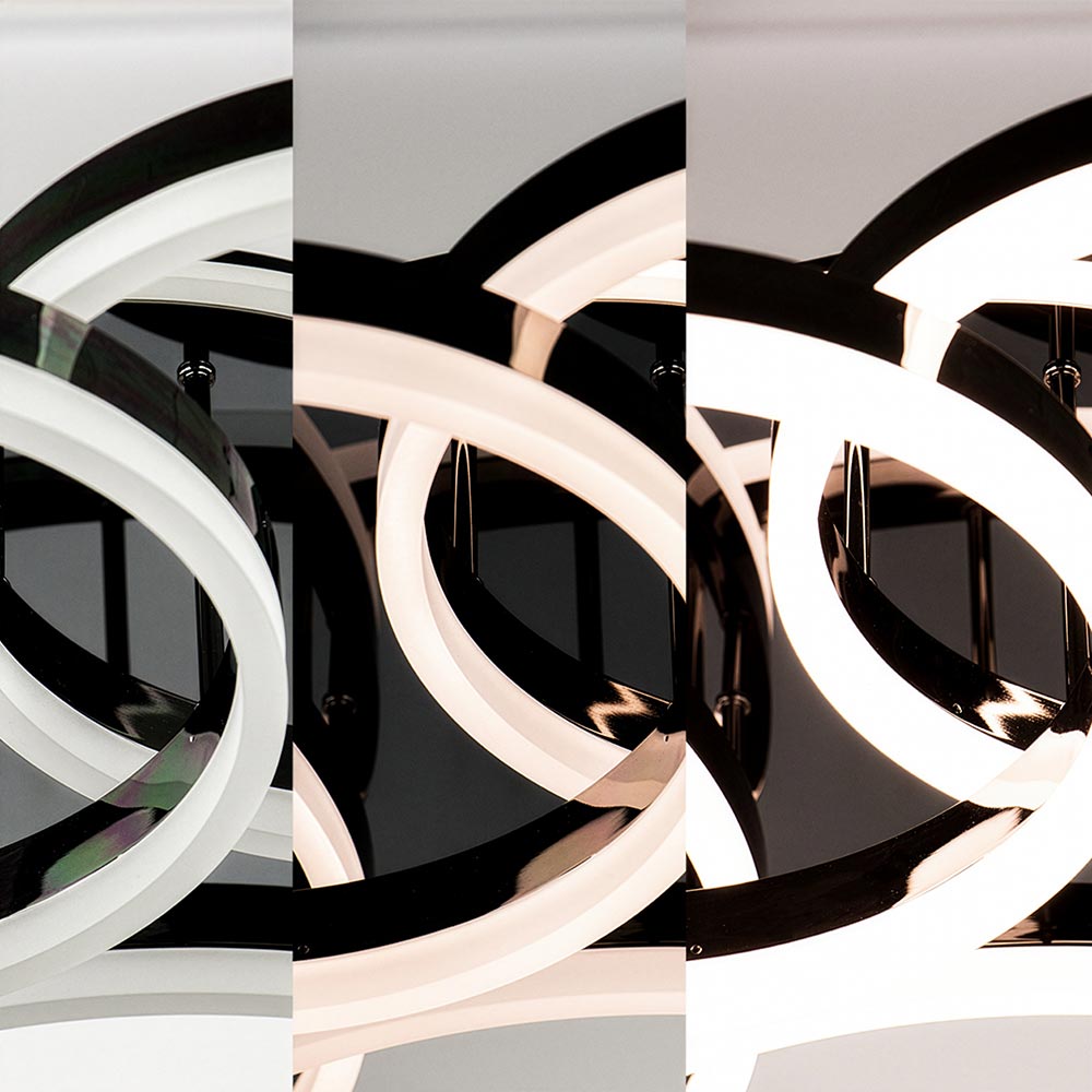 Schenna Plafondlamp – Chrome/Zwart – 5 ringen – LED – 3-standen licht