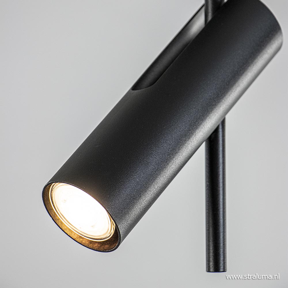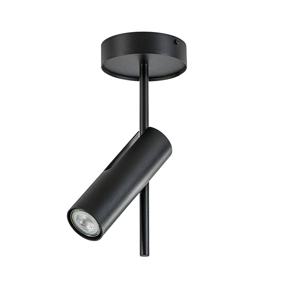 – hoogte: 33 cm – kap: Ø6×20 cm – bevestiging: Ø13×3,5 cm – metaal, mat zwart – verstelbare spot – kantelbaar, draaibaar – exclusief lichtbron (GU10) – dimbaar (exclusief)