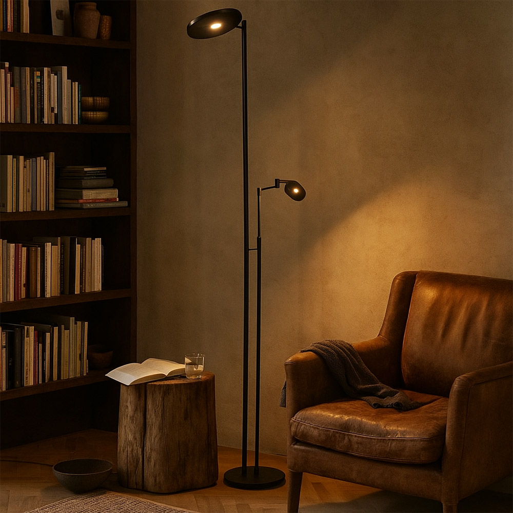 Uplight vloerlamp met leeslamp – Mat zwart – LED