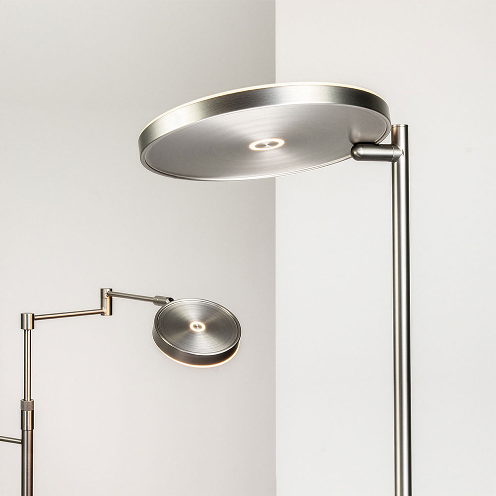 Uplight vloerlamp met leeslamp – Nikkel – LED
