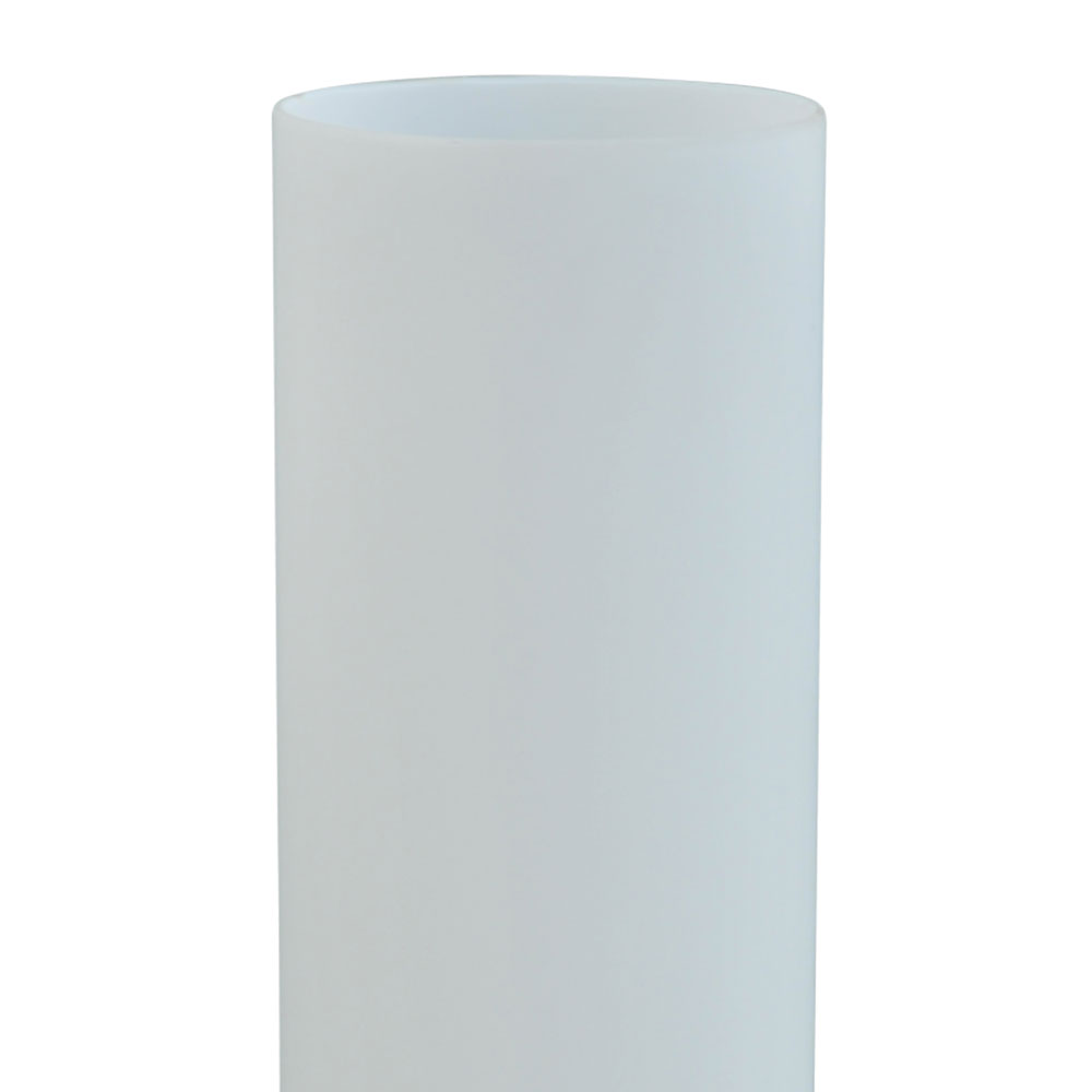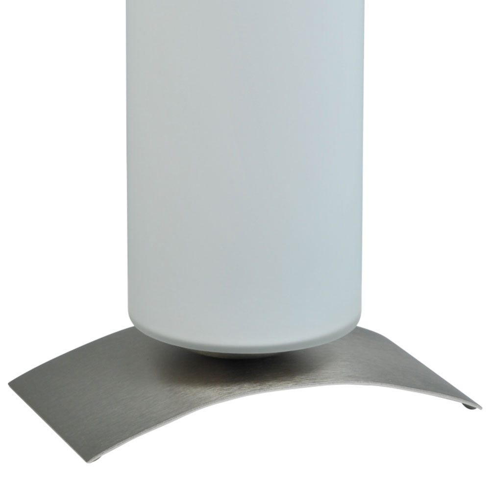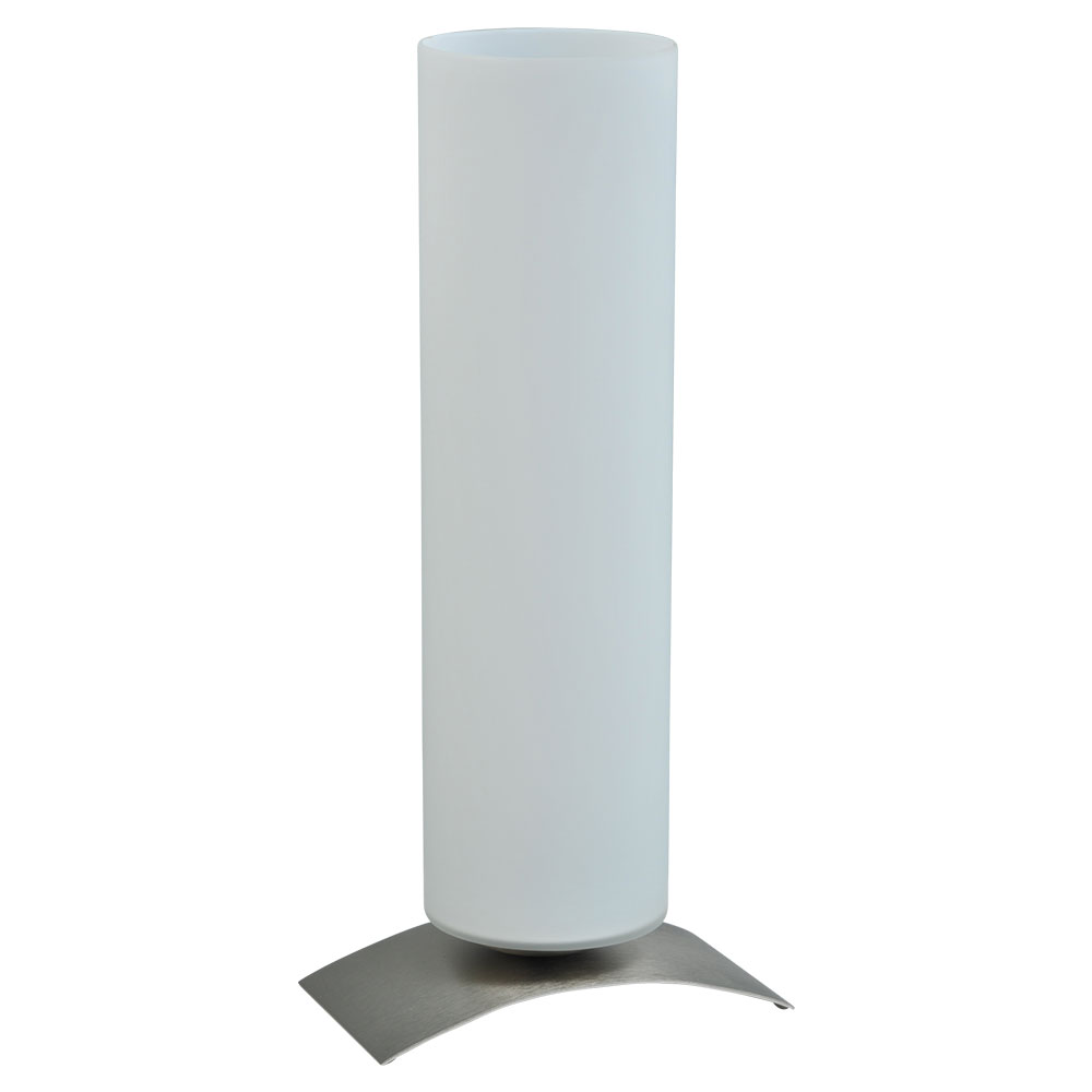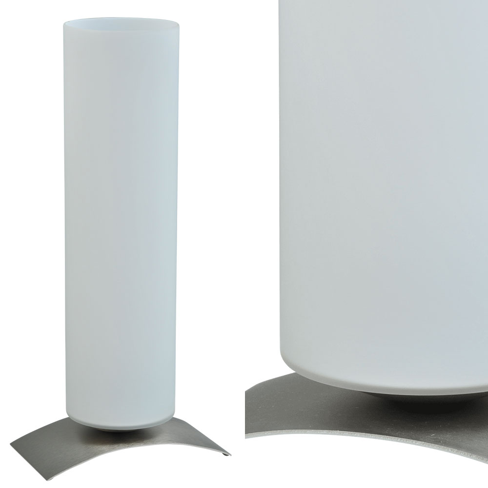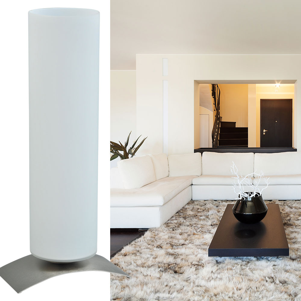 – hoogte: 39 cm – doorsnede: 10 cm – voet: nikkel – glas: mat wit