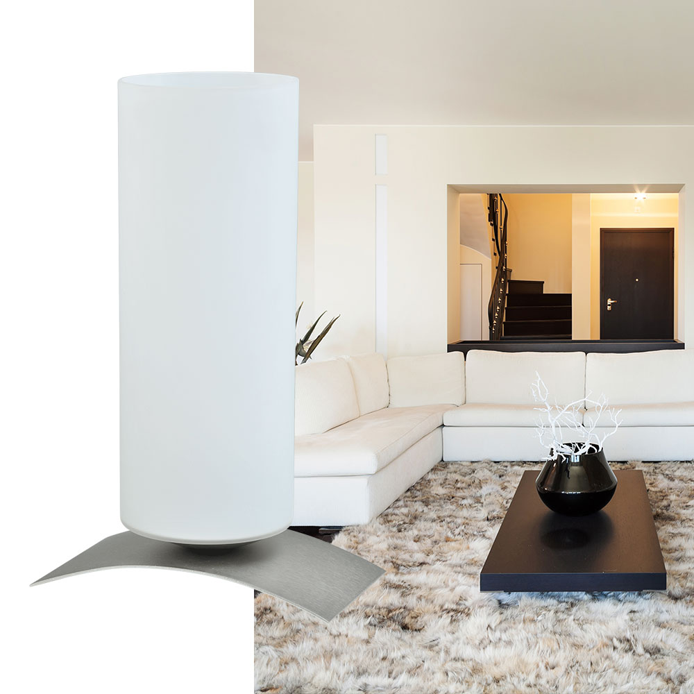 Tafellamp Oblica is een strakke tafellamp van glas met nikkel. Door het uiterlijk is hij geschikt voor het moderne interieur, maar wanneer hij brand geeft hij heel warm licht en is hij ook zeer geschikt om als sfeerverlichting te gebruiken. Leverbaar in diverse maten en ook in het vierkant.