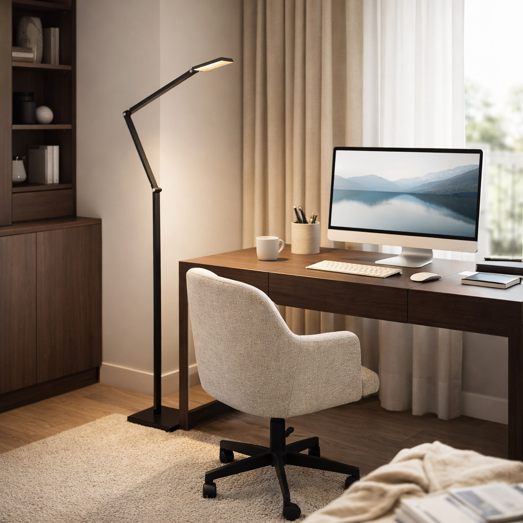 Waarom kiezen voor deze verstelbare LED vloerlamp? • Volledig instelbaar licht voor lezen en werken • Moderne uitstraling in twee tijdloze kleuren • Sfeervol én functioneel dankzij CCT-techniek • Compacte voet, groots in gebruiksgemak • Perfect naast een bank, fauteuil of bureau