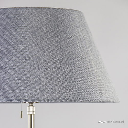 Een lamp met kap hoeft niet saai te zijn. Deze moderne vloerlamp laat dat maar al te goed zien. De lamp heeft de naam Bendy en doet zijn naam ook eer aan. Het speelse effect om de kap schuin op de lamp te zetten geeft net even een moderne twist aan de lamp. Liever de kap recht, dan is dat geen probleem, de grijze kap is gemakkelijk te kantelen. De lamp heeft een mat zwart metalen voet die overloopt in chroom. De vloerlamp wordt gemakkelijk aan/uit geschakeld met het trektouwtje bij de fitting en wordt geleverd met transparant snoer.