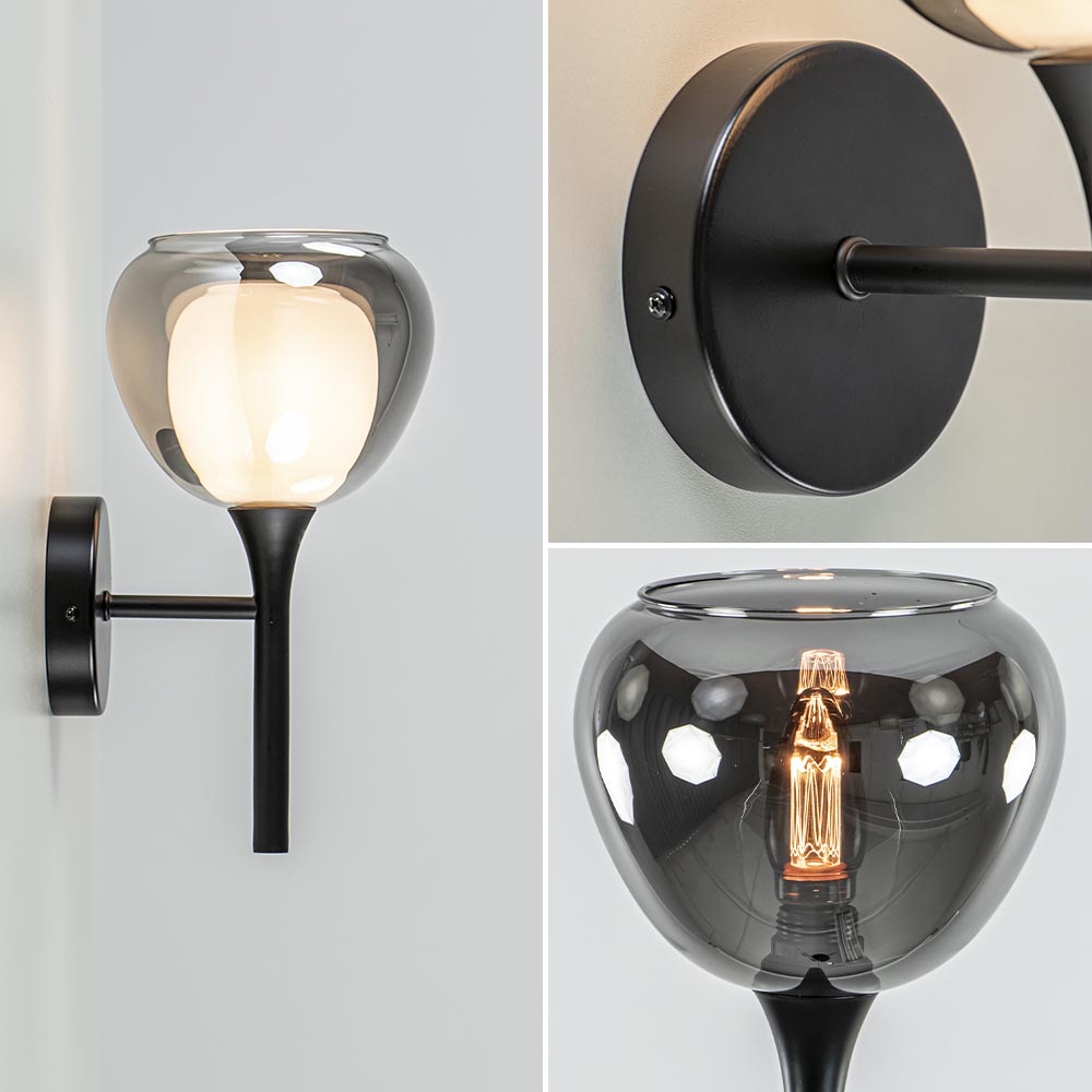 Homepagina / Lampen / Wandlampen / Moderne wandlamp zwart met smoke glas