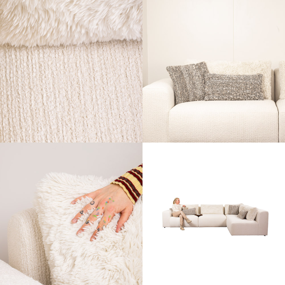 De afgeronde lijnen, diepe zit en brede elementen maken Lucy niet alleen stijlvol, maar ook bijzonder comfortabel. De meegeleverde kussens in Yakety Ivory versterken het zachte karakter en nodigen uit om lekker onderuit te zakken. Perfect als hoekopstelling in een open woonkamer of de losse elementen verdelen in een modern interieur. Wil je andere stoffen, kleuren of een andere indeling? Kom langs in onze showroom en stel jouw ideale Lucy-bank samen – van stofkeuze tot opstelling, helemaal afgestemd op jouw woonwensen.