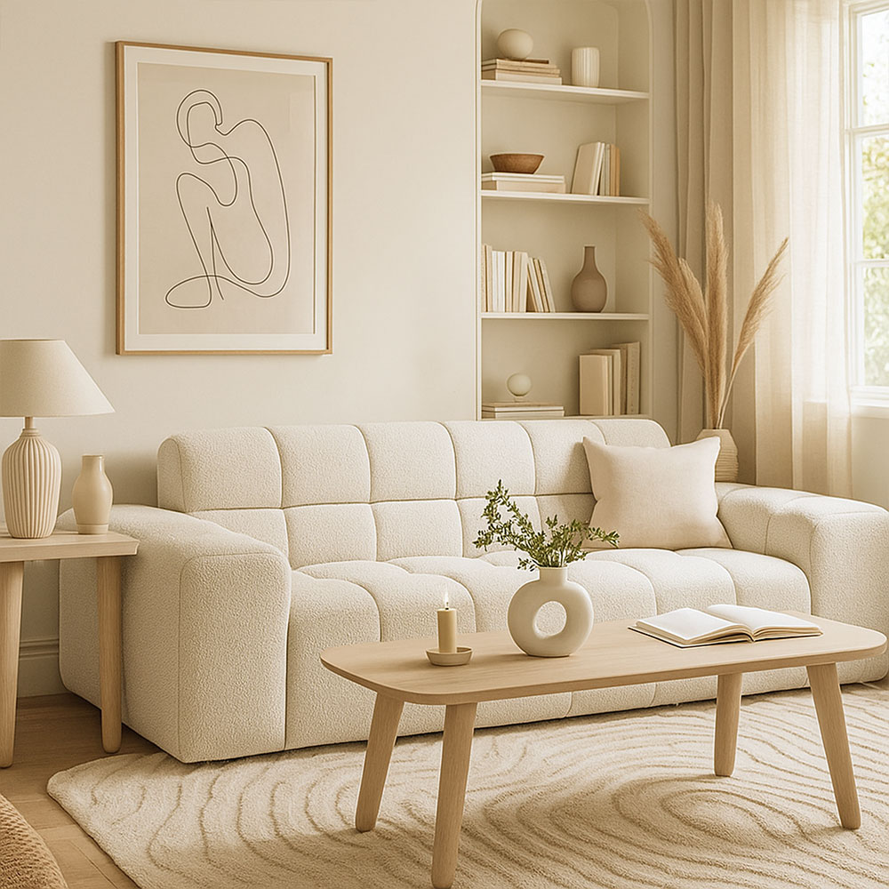 De Veronique van Sevn is een moderne, modulaire hoekbank die je woonkamer een rustige en eigentijdse uitstraling geeft. Uitgevoerd in de luxe stof Lodge – Linen (stofgroep C) in een zachte crème witte tint, combineert deze 3-zits hoekbank comfort met tijdloos design.