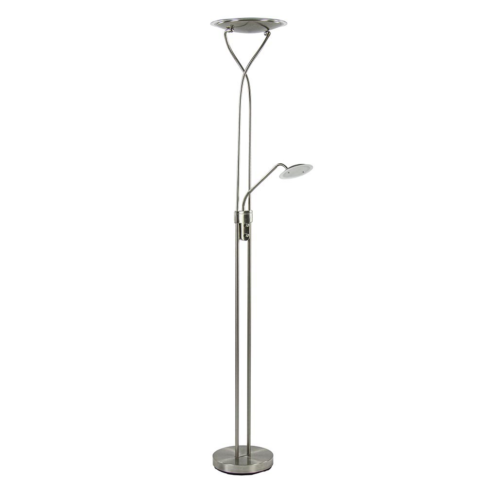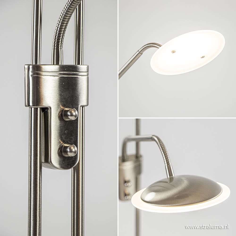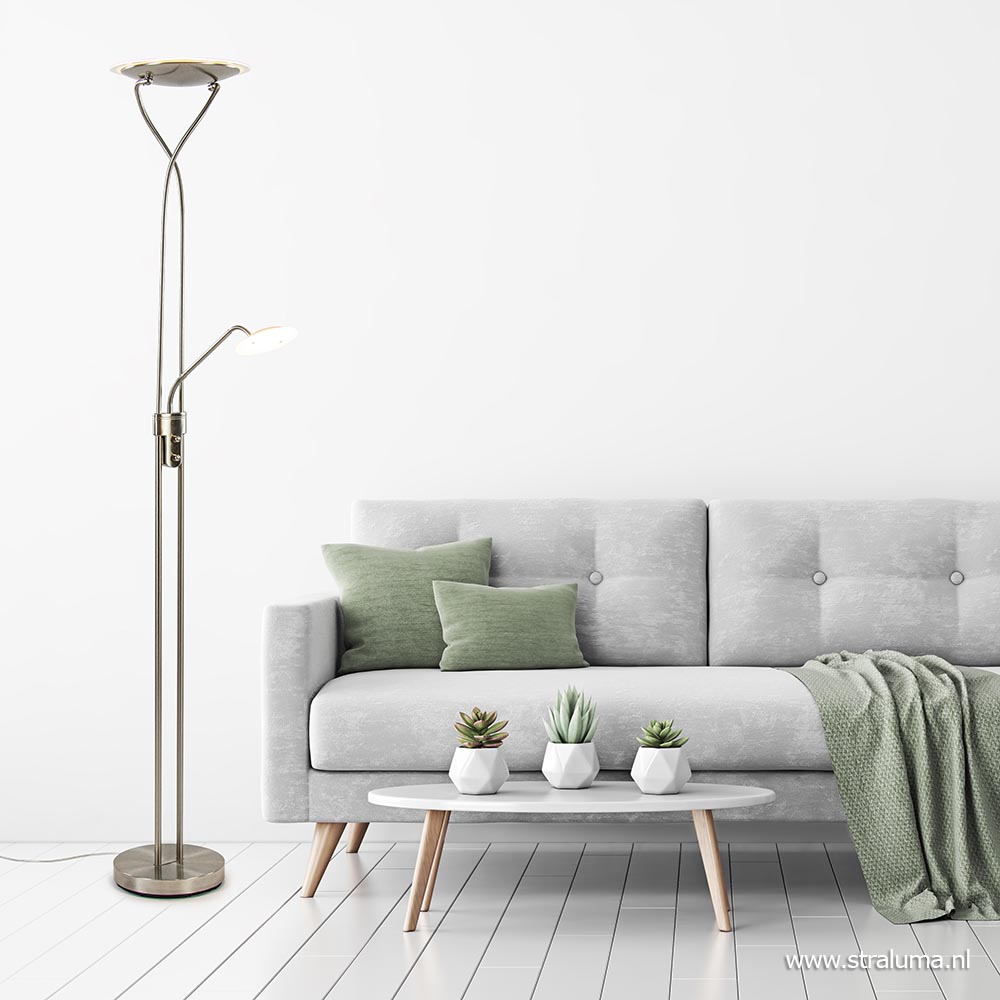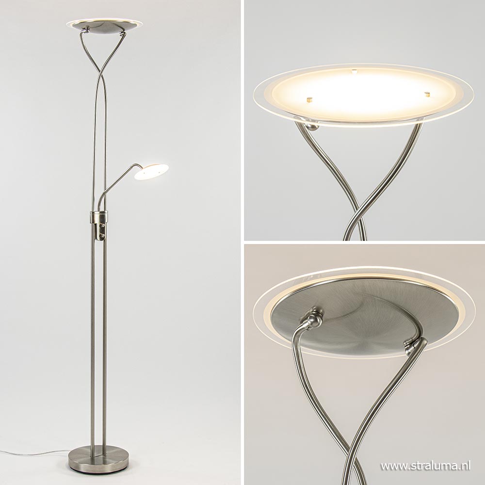 Homepagina / Lampen / Leeslampen / Nikkel vloerlamp met LED uplighter en leeslamp